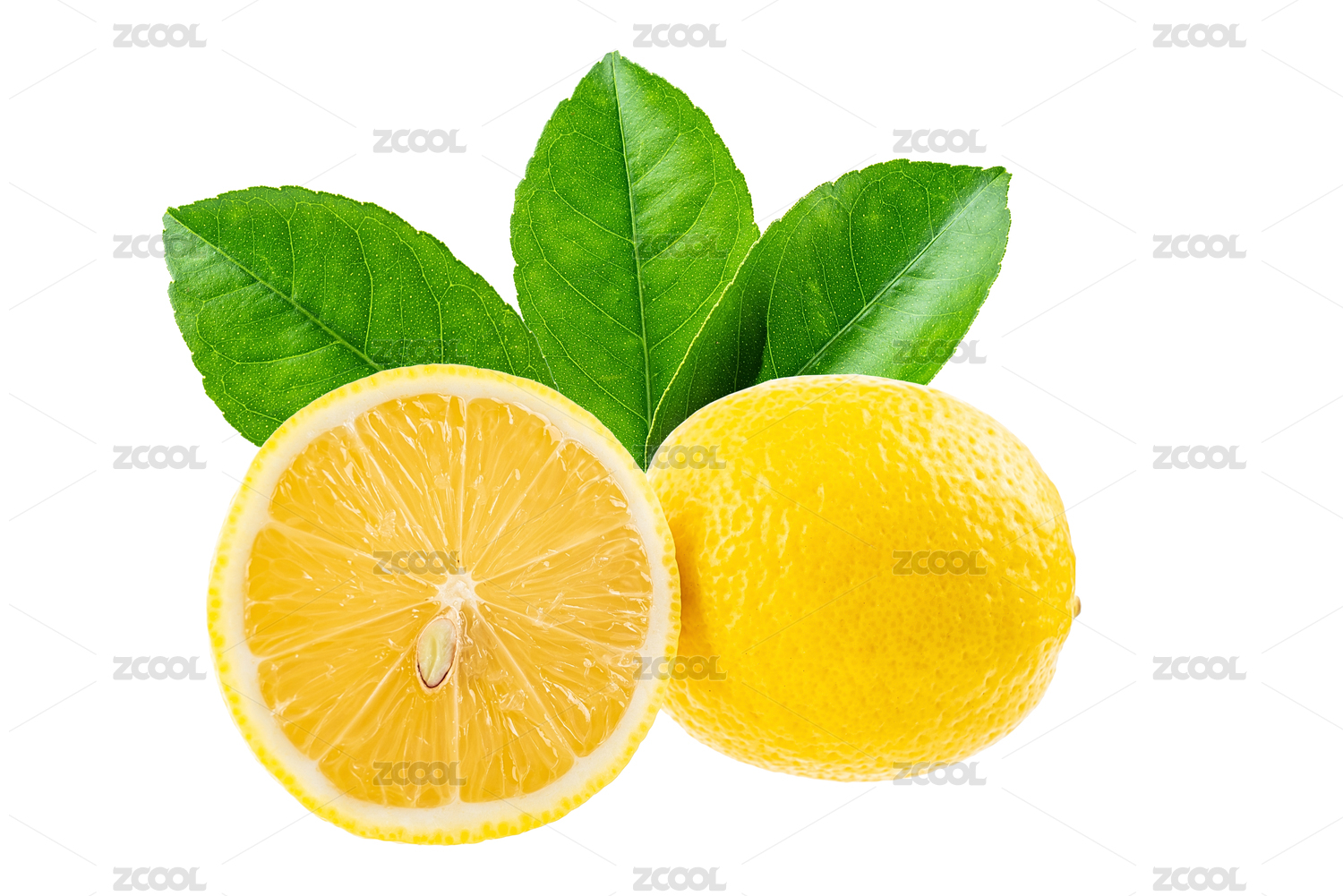 新鲜柠檬的切面与整体展示