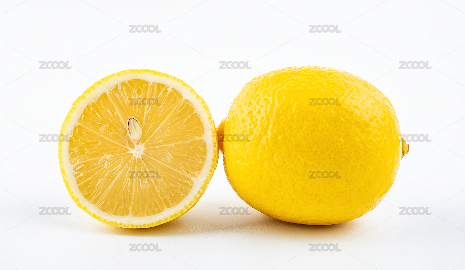 新鲜柠檬的完整与切半展示