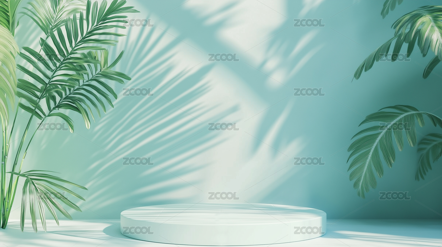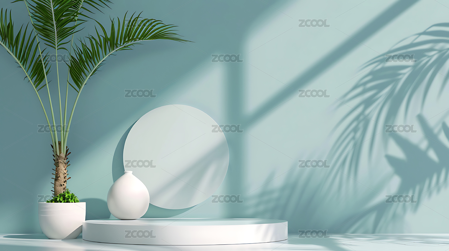 产品展台,绿植,植物,湖蓝,蓝色,金属,金色,背景,底座,圆形