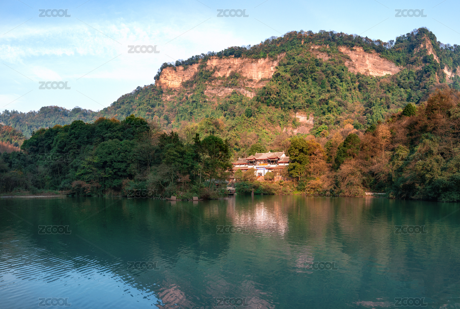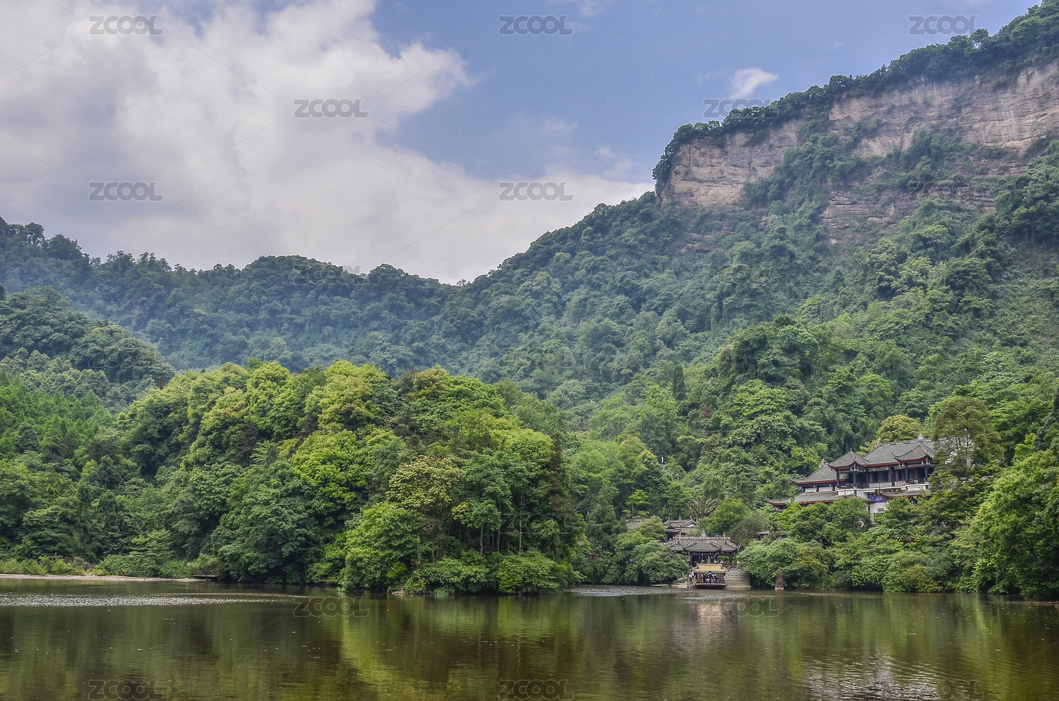 月城湖,湖,四川,成都,都江堰,青城山,风景,山谷,山峰,游船