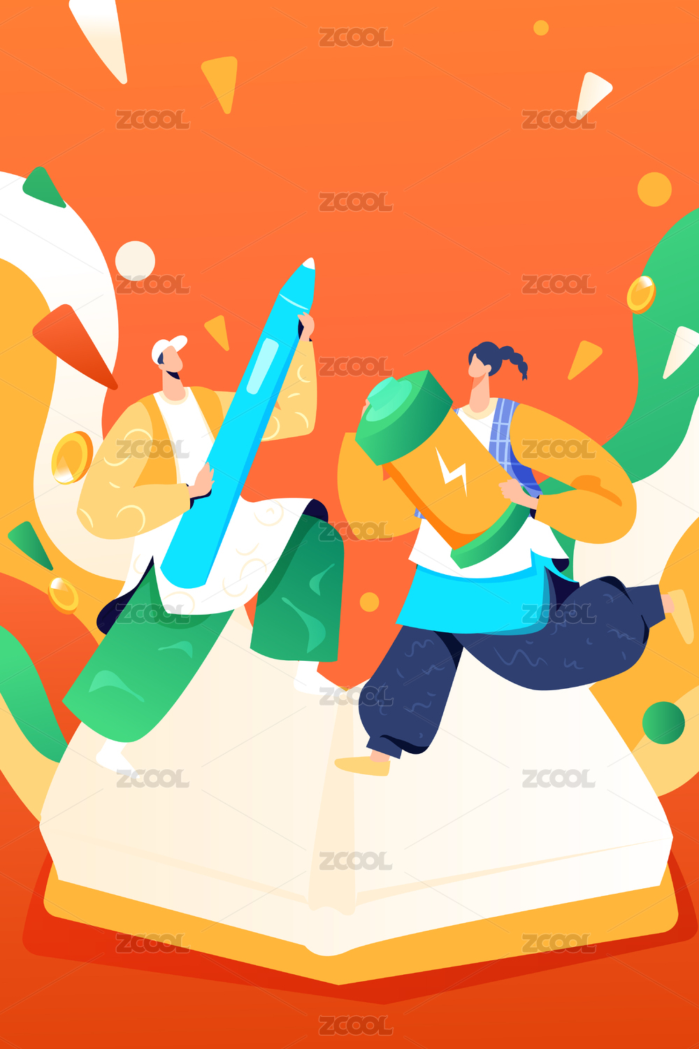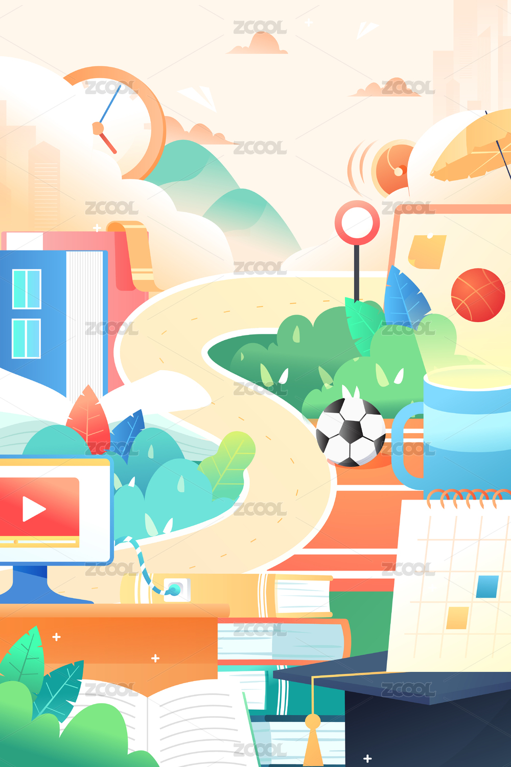 矢量,卡通,渐变,扁平,插画,插图,背景,元素,在线,网课