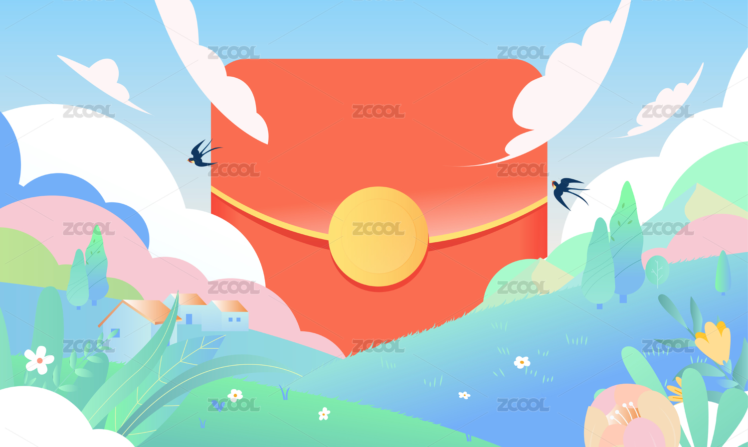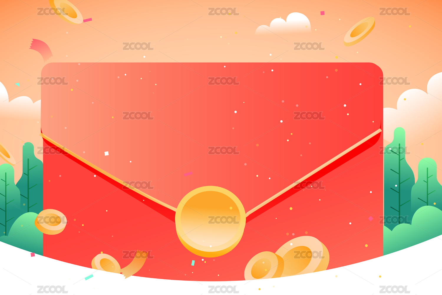 卡通红包互联网金融活动背景矢量插画