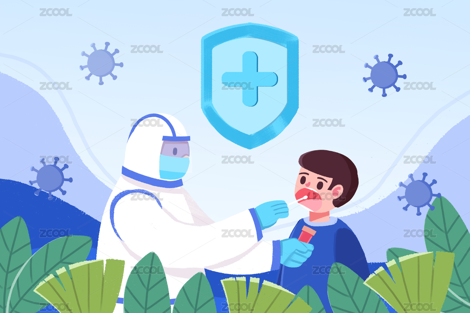 抗疫医生核酸检测插画医护人员幸苦检查海报