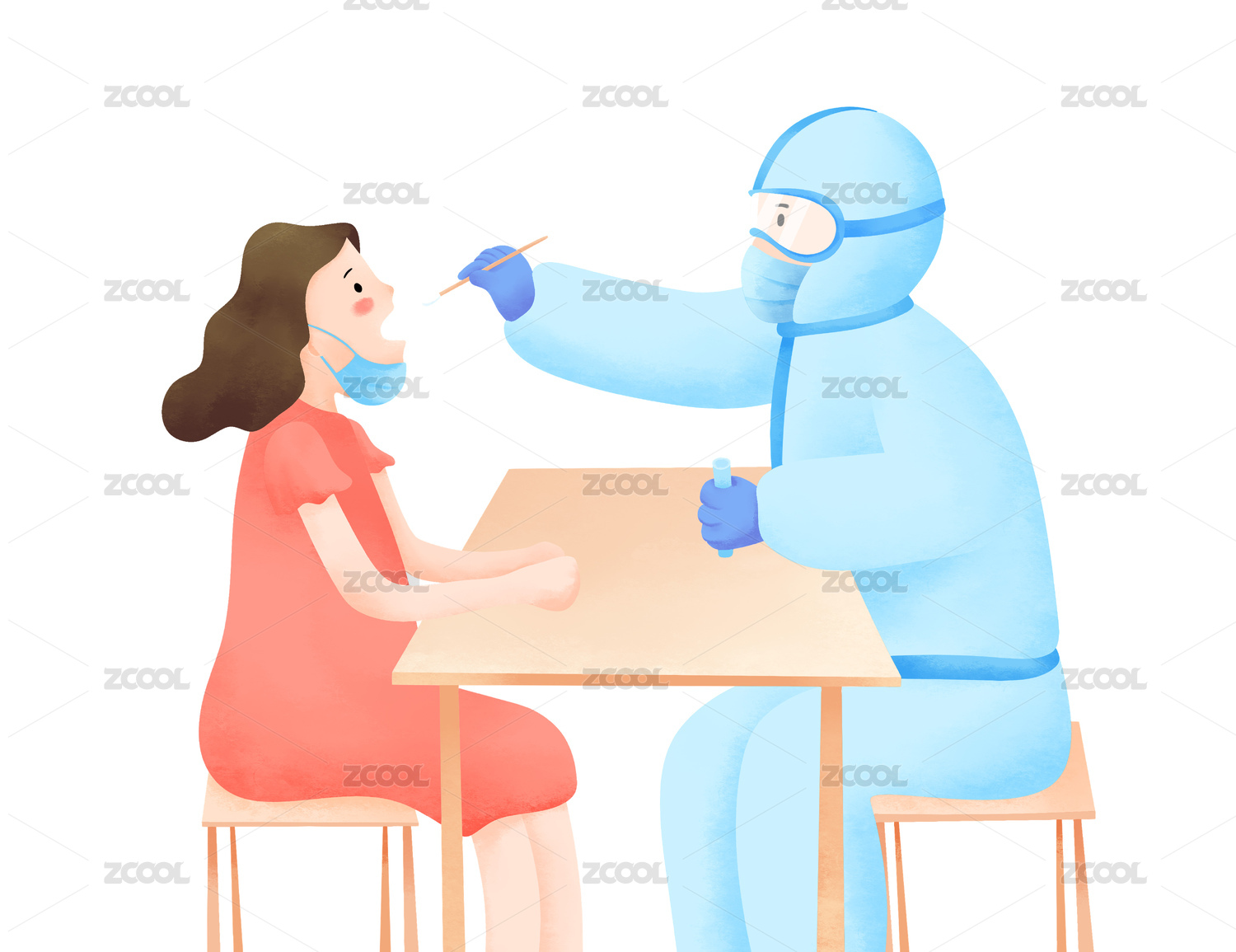 卡通手绘医护人员给人做核酸插画