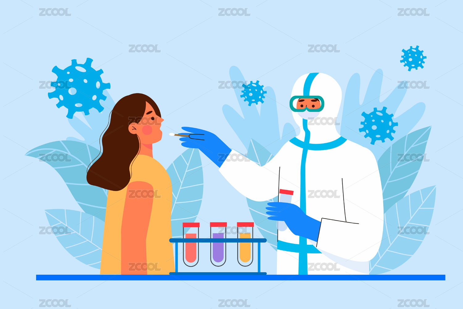 医护人员做核酸检测扁平插画