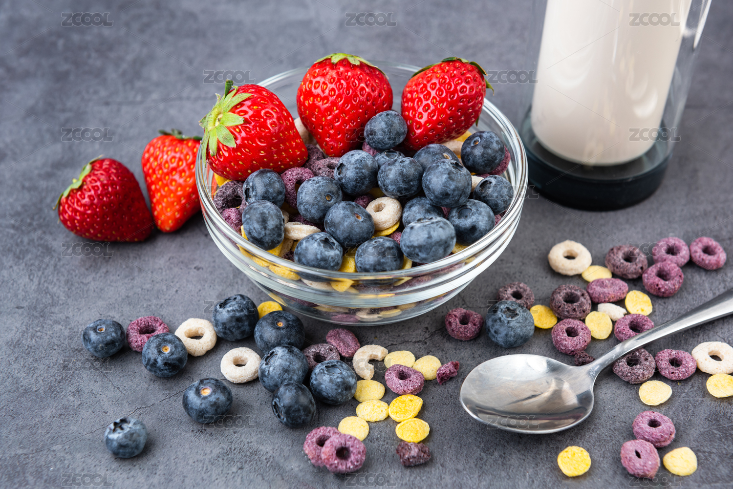 谷物圈麦片和水果
