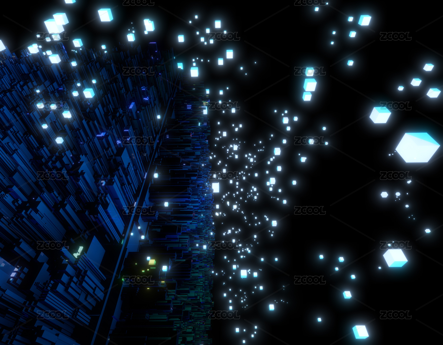 立方体组成的数据阵列,代表着互联网数据的存储与传输,未来信息科技与智能时代