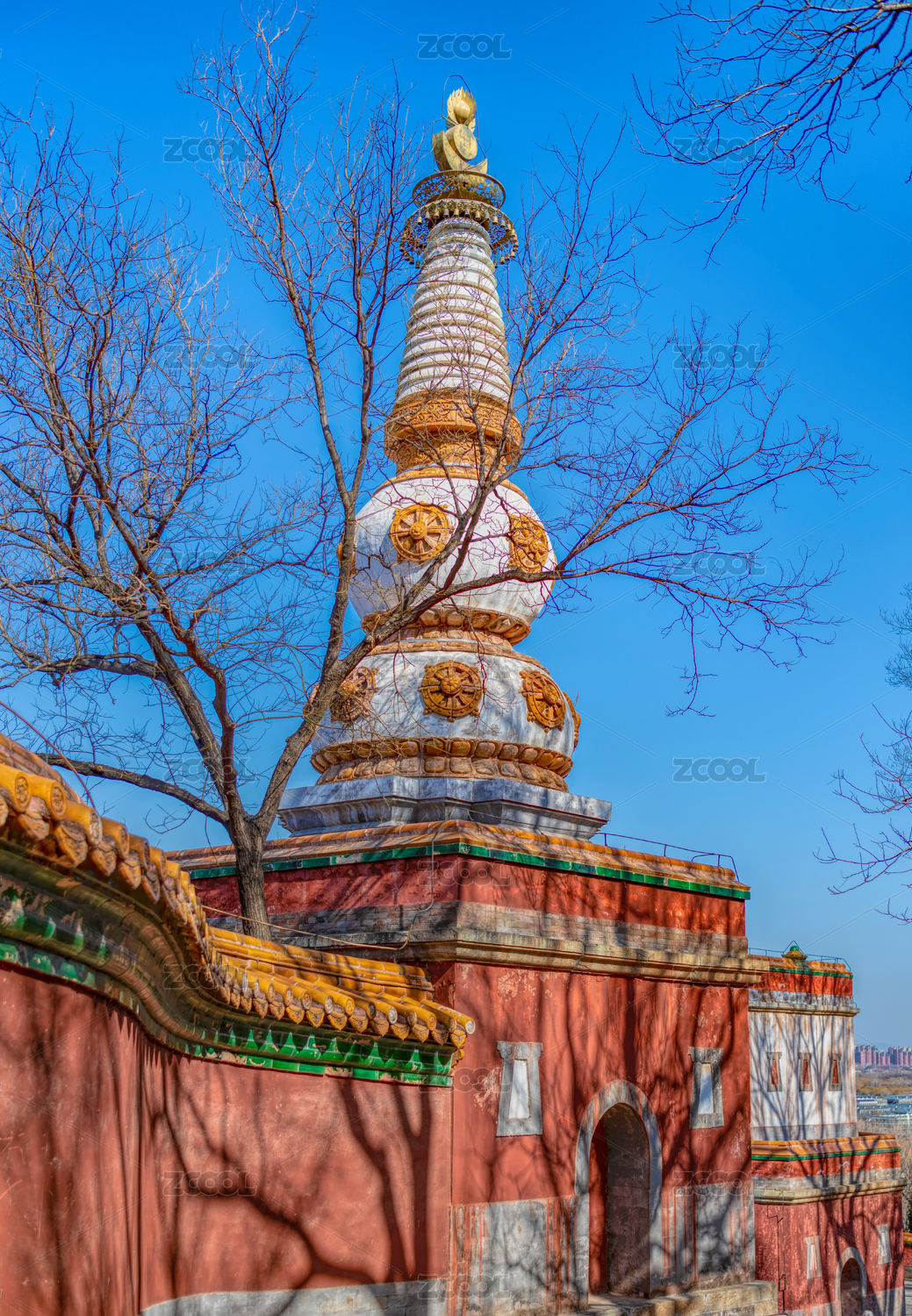 北京妙应白塔寺庙红墙古建筑历史文化胡同街