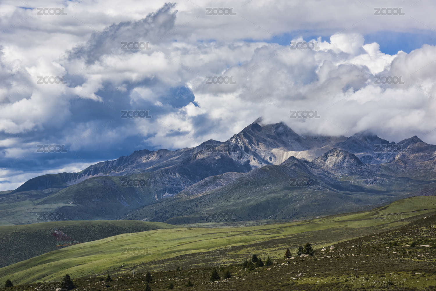 中国四川甘孜州康定青绕神山高山林区草甸风光