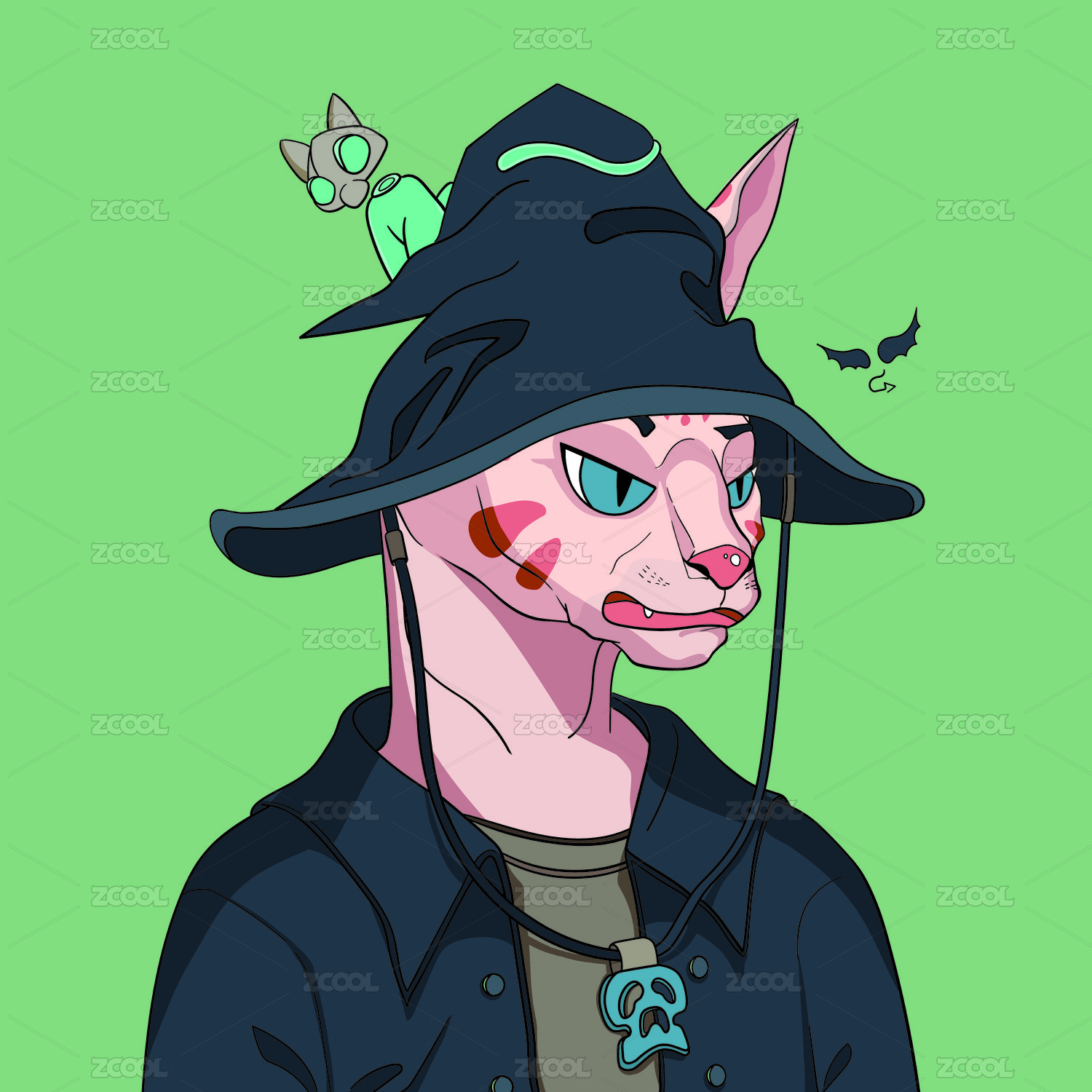 绑着绷带,有着胡子,冒着幽火的独眼猫咪