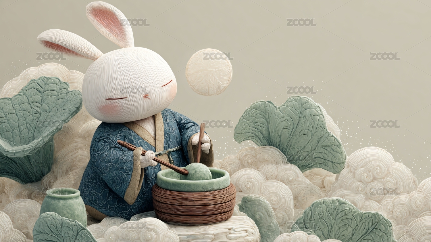 手拿月饼的卡通汉服玉兔