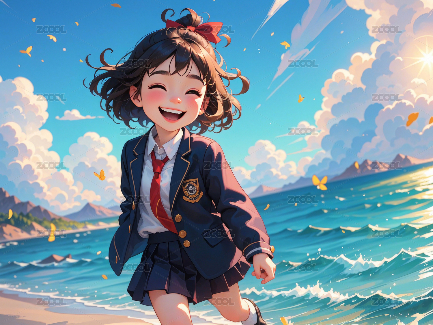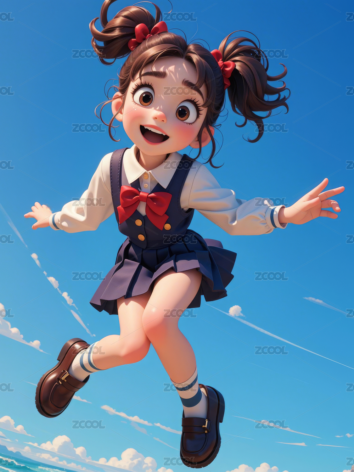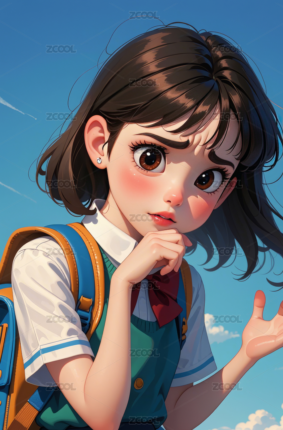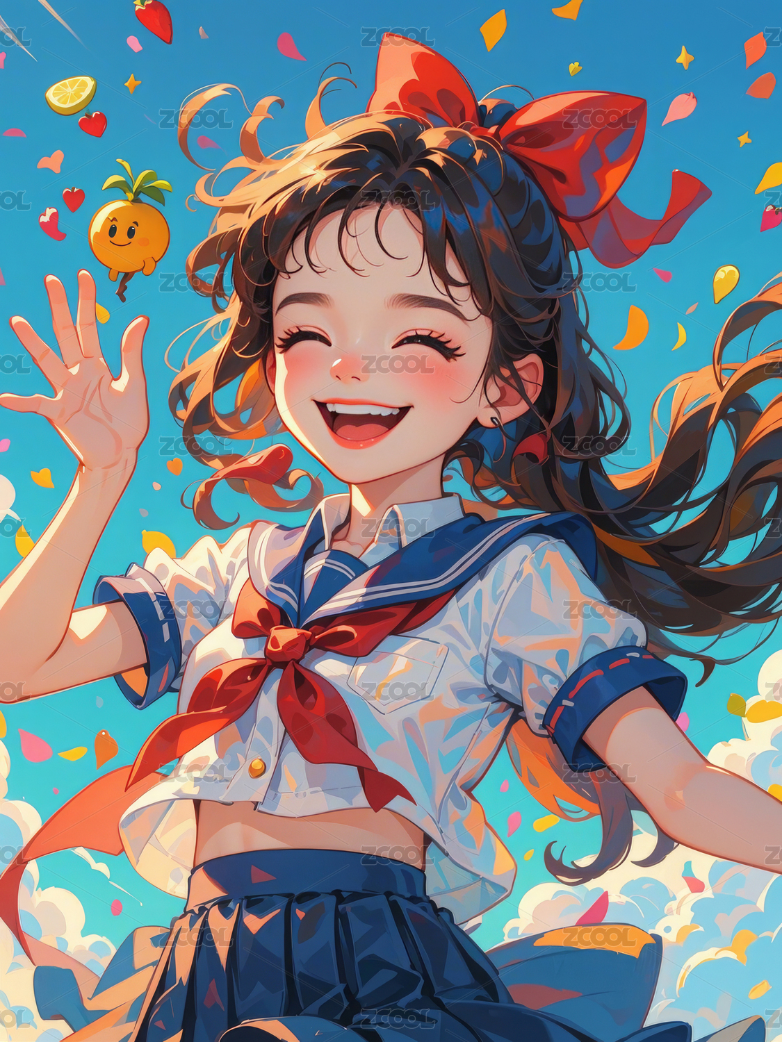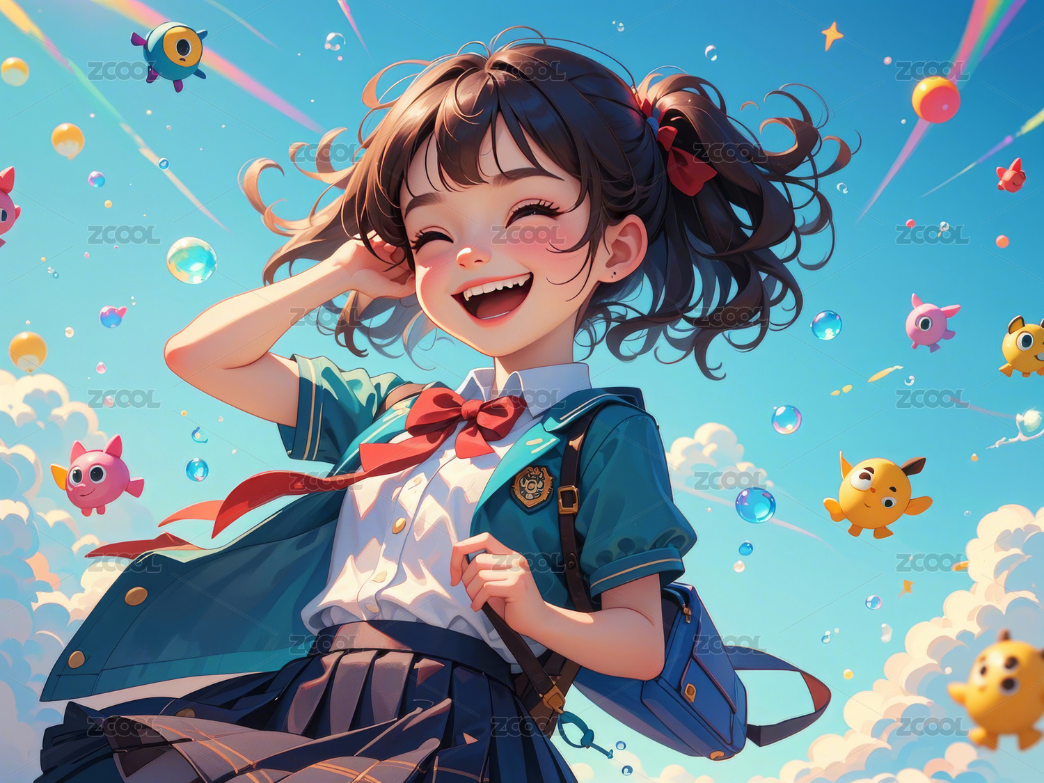 AIGC202402,学生,人物,插画,女孩,教室,开心