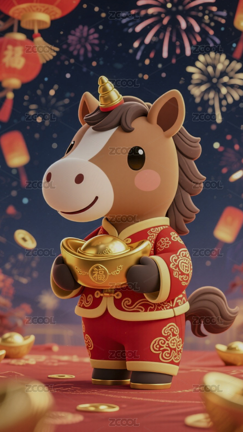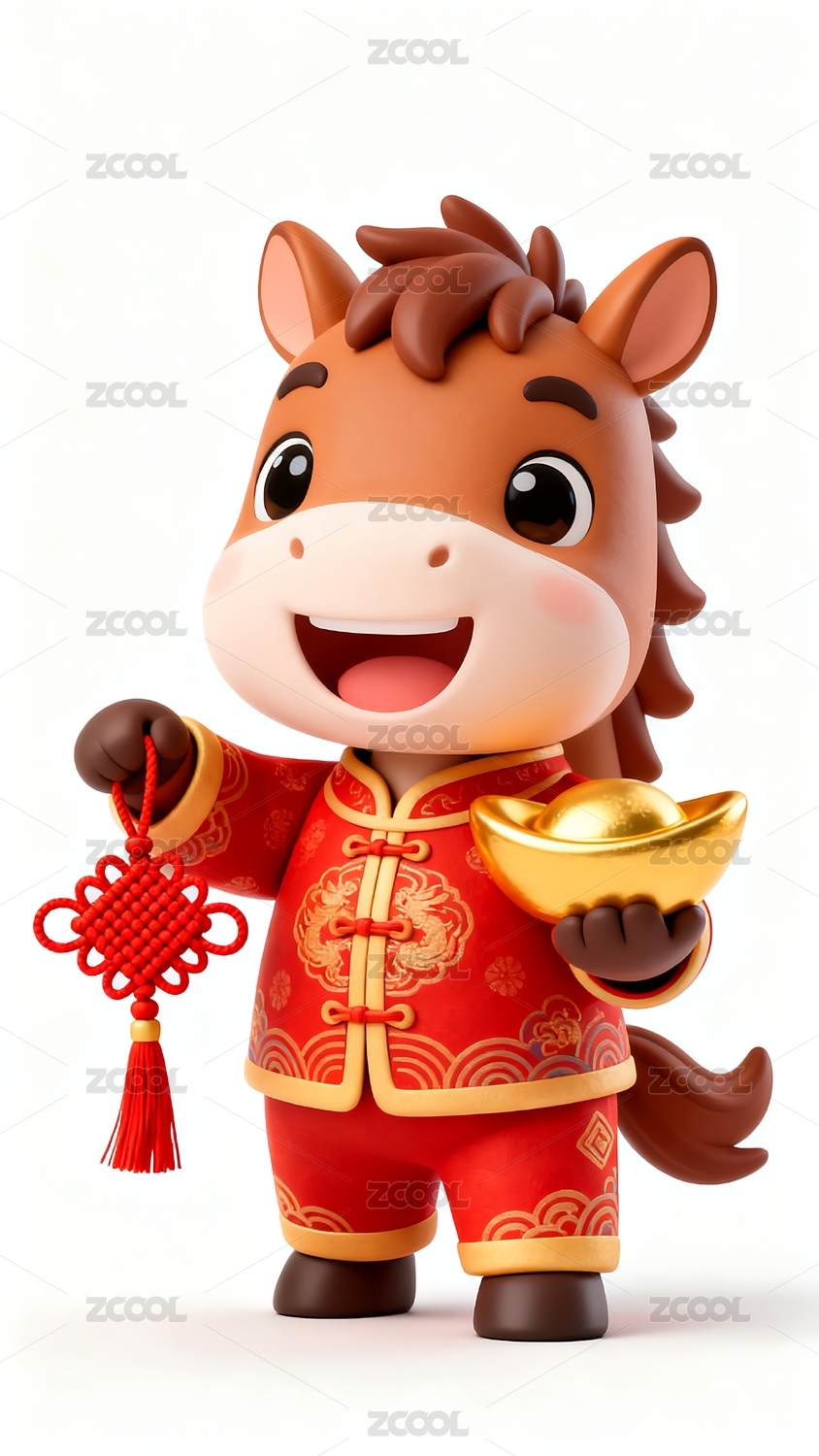 穿唐装的卡通马手持金元宝