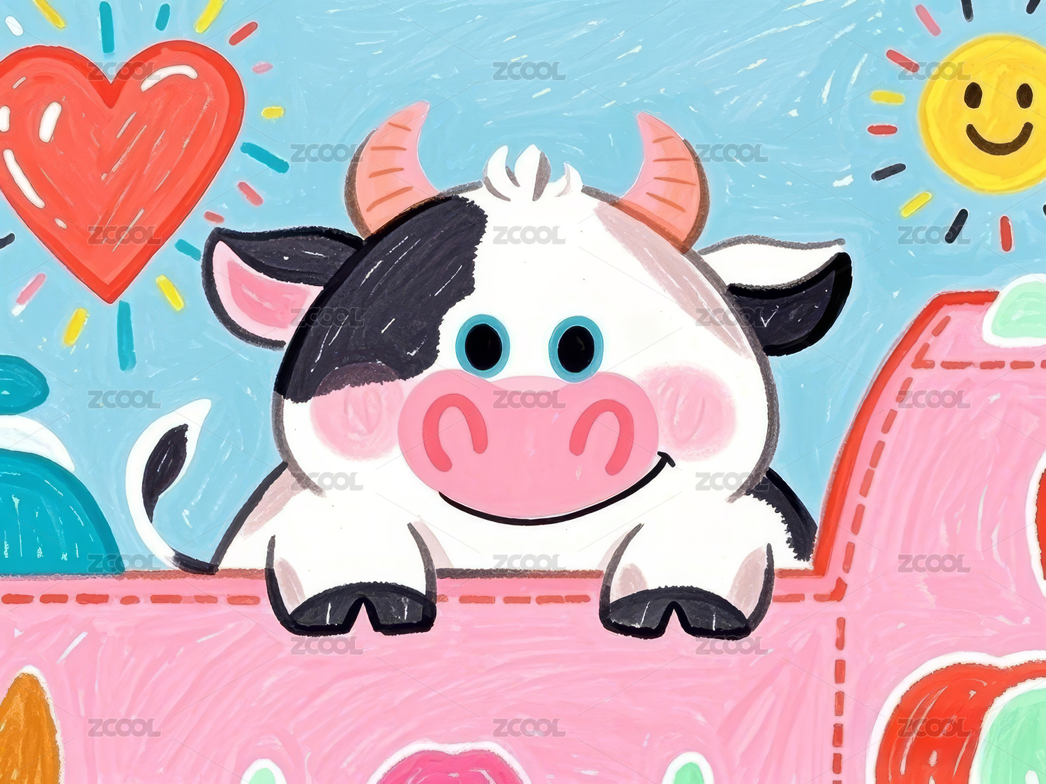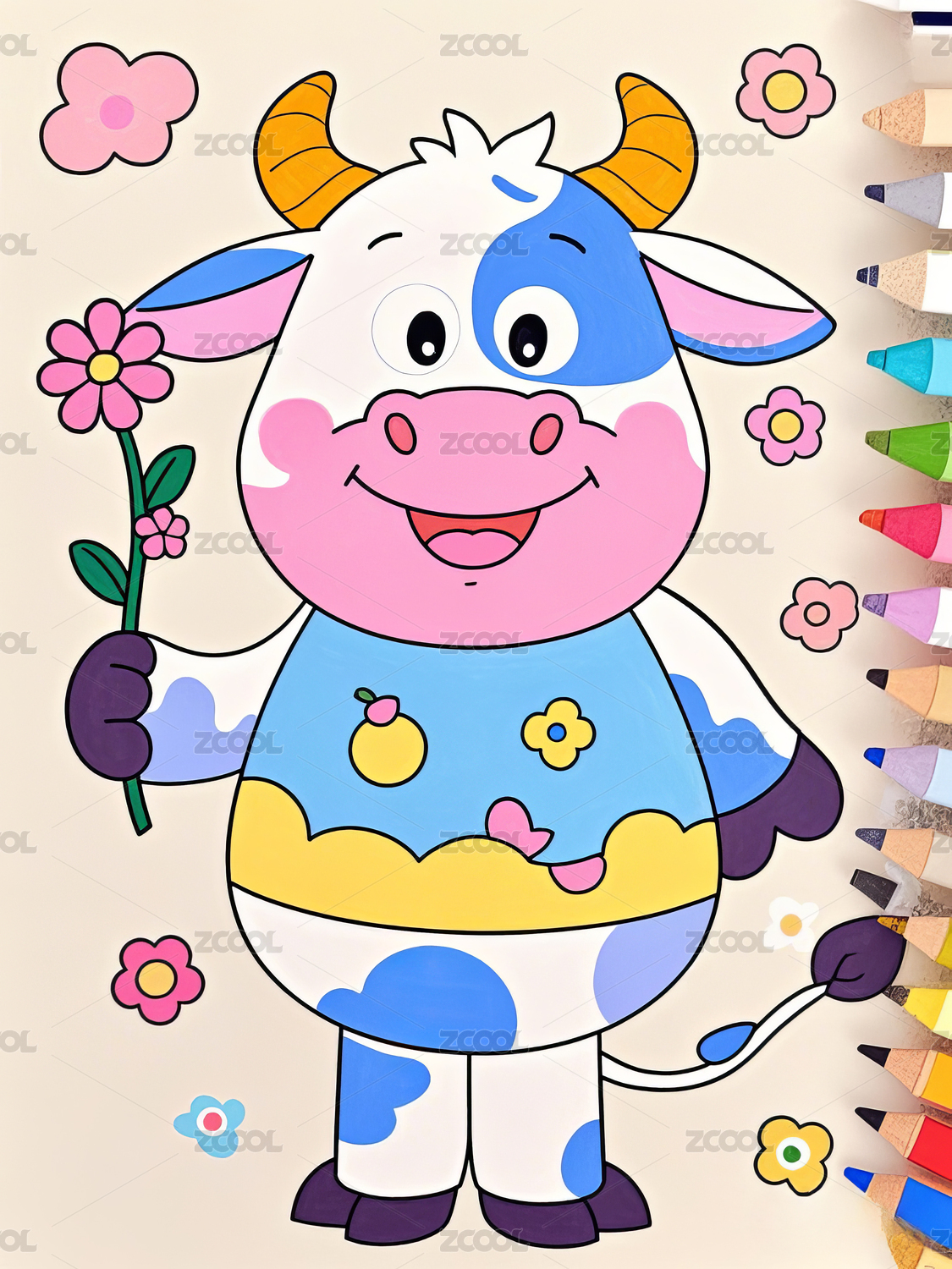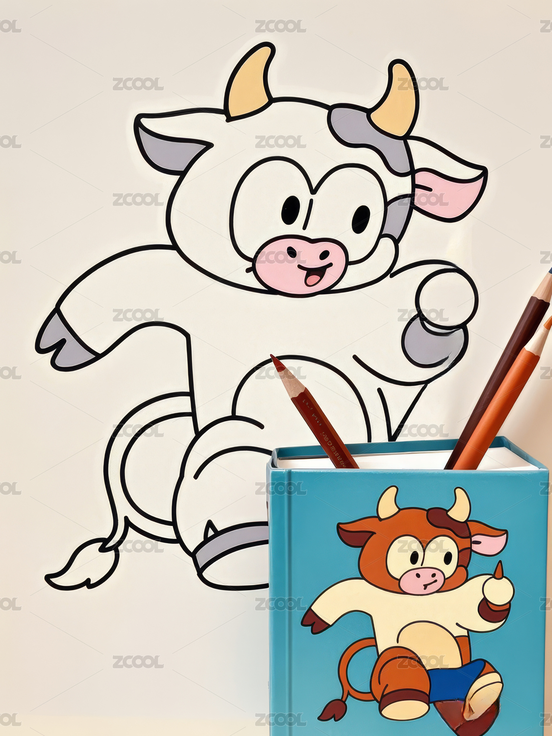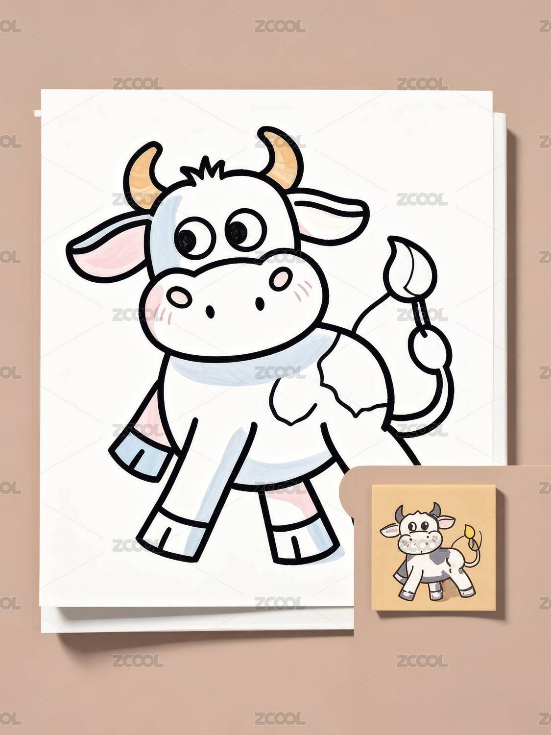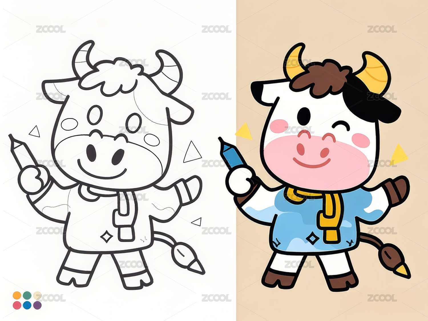 生肖,插画,着色画,牛,生肖牛,卡通,简笔画,模板