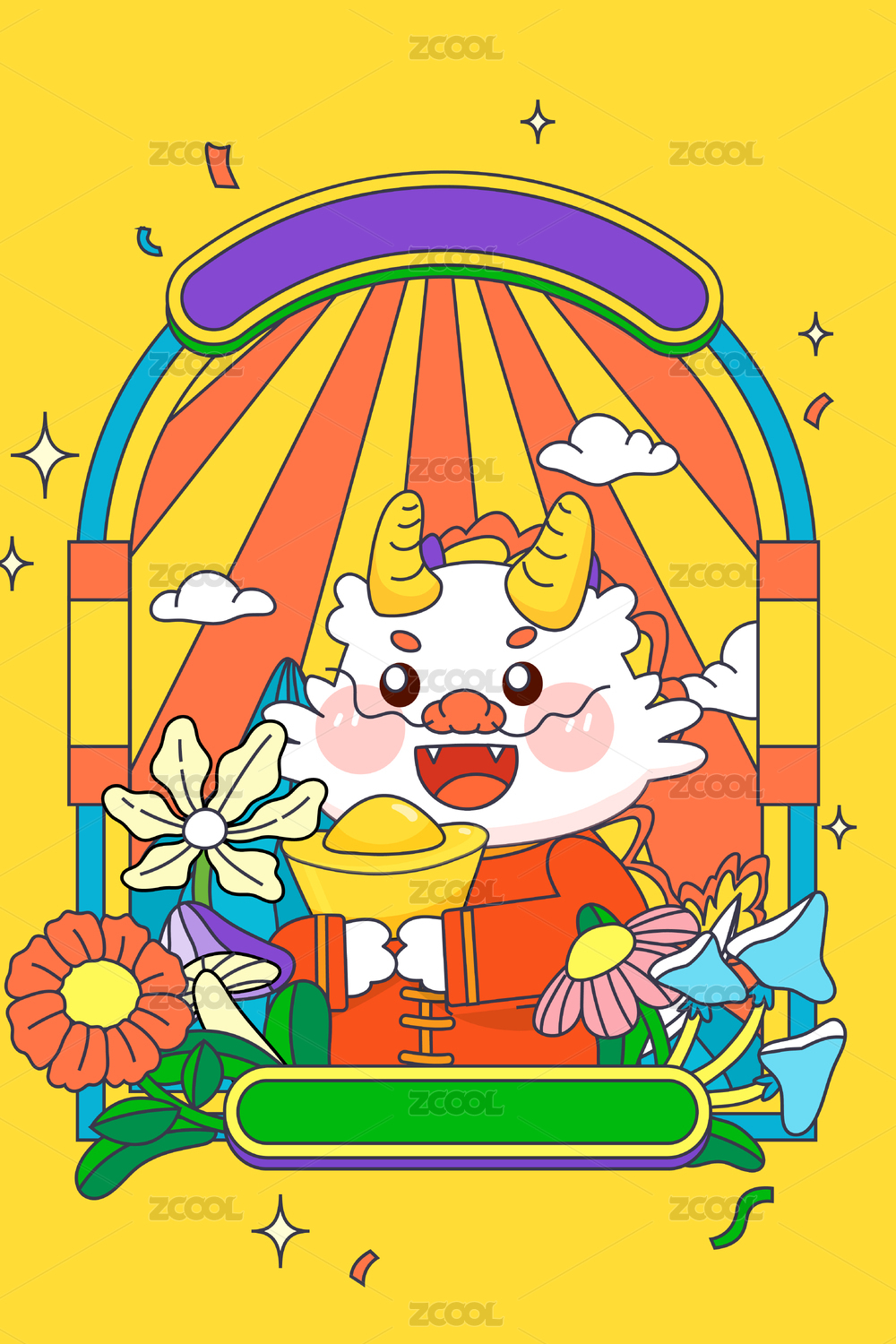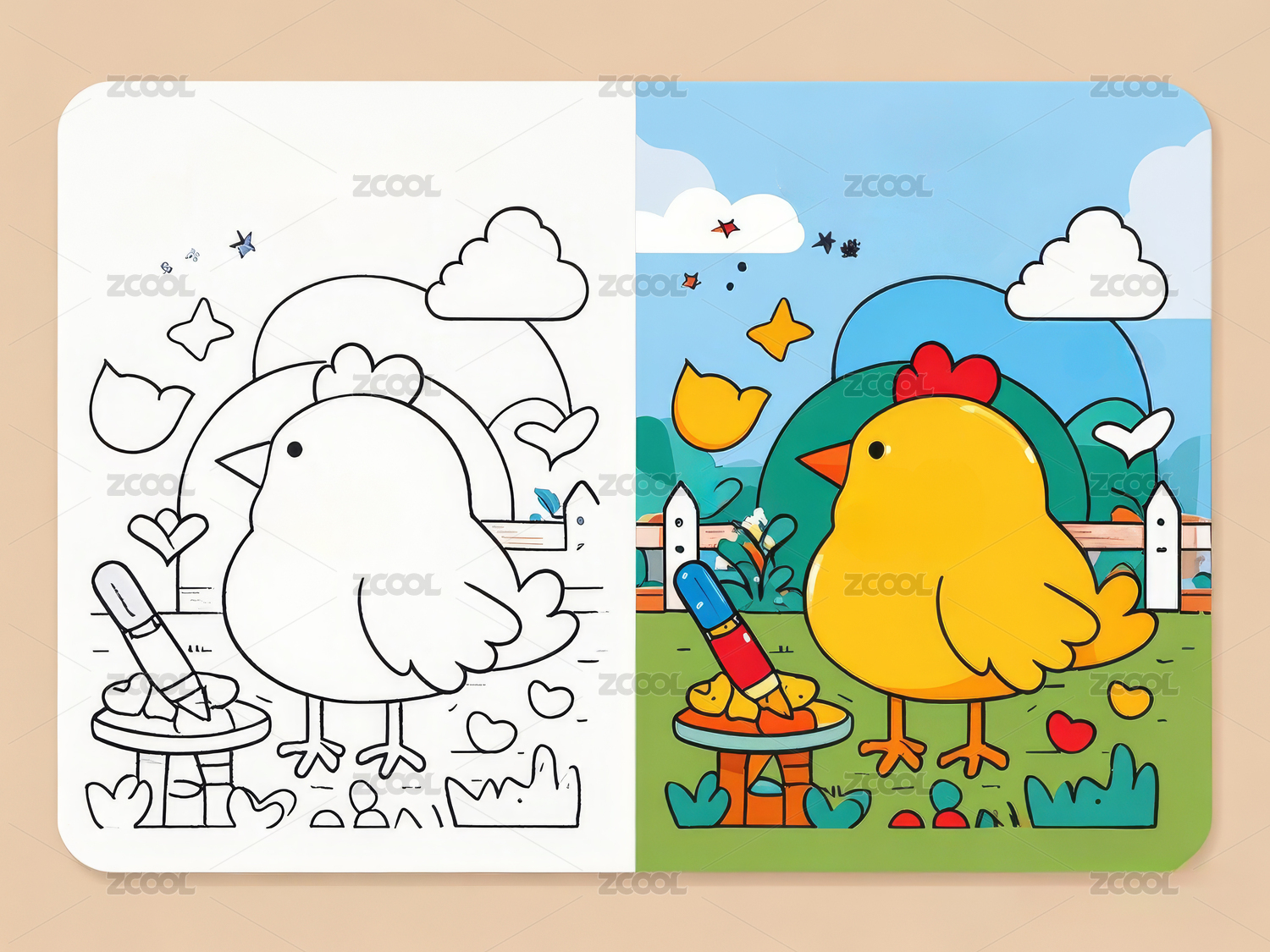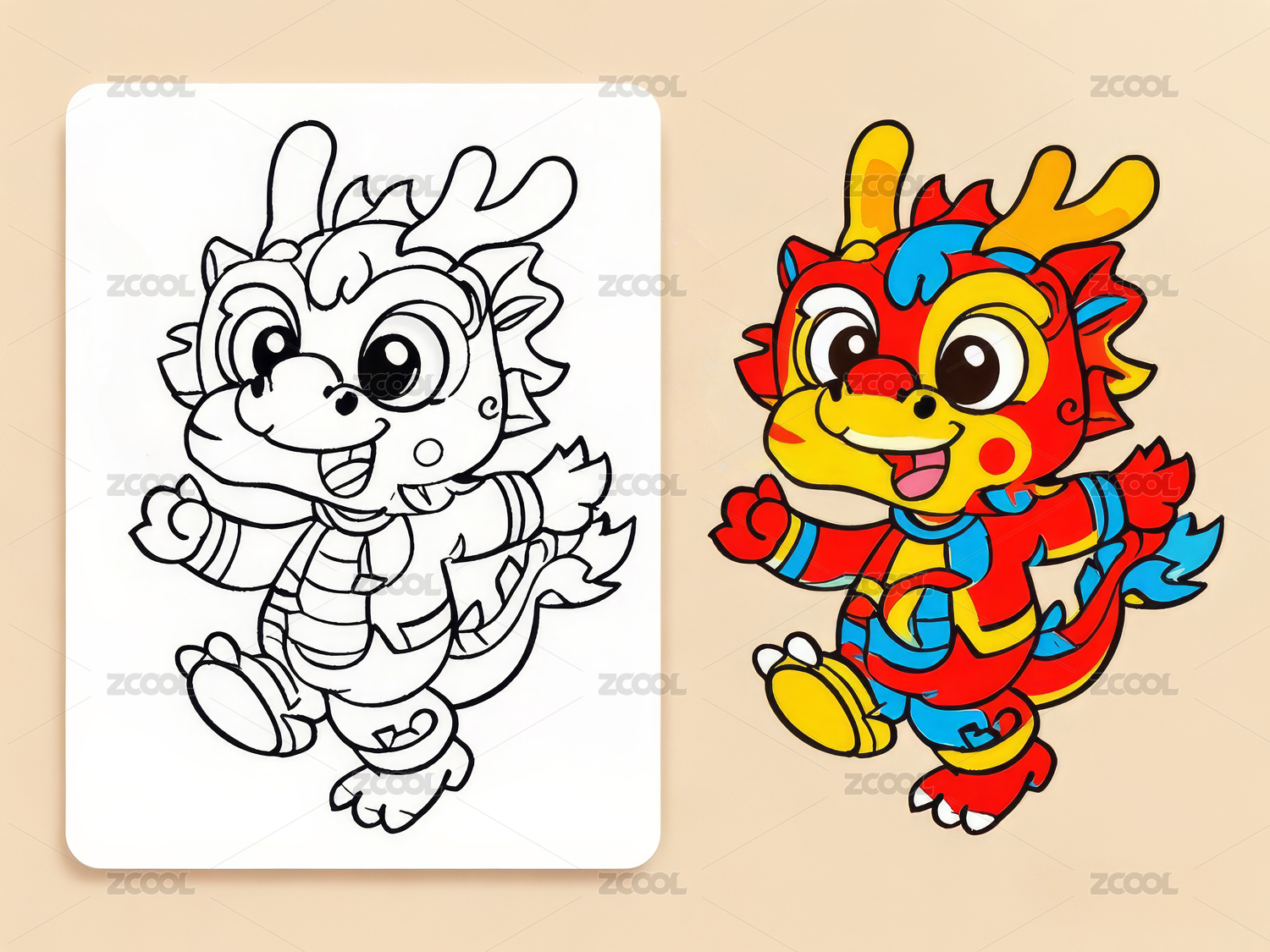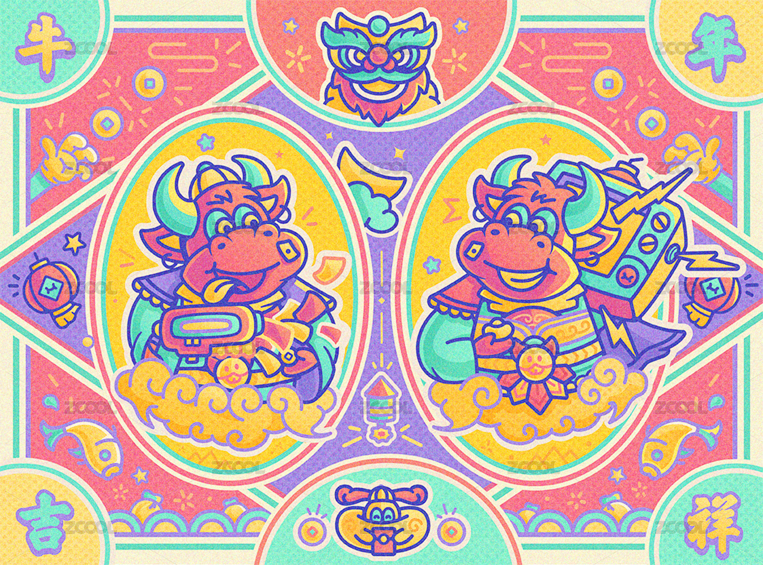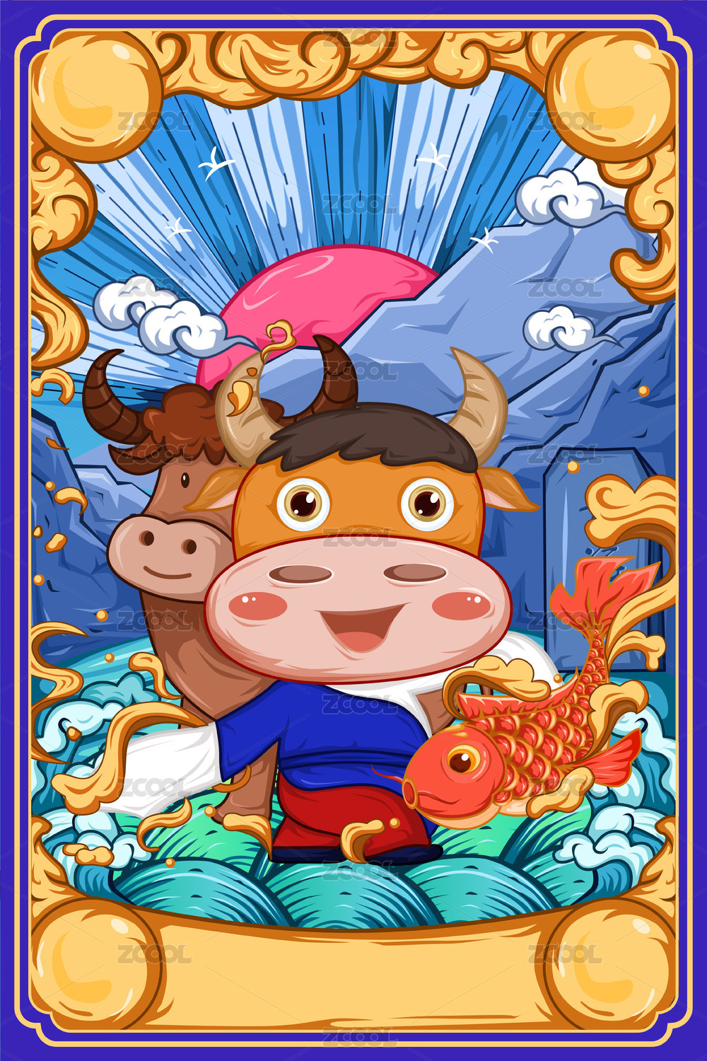 生肖,插画,着色画,牛,生肖牛,卡通,简笔画,模板