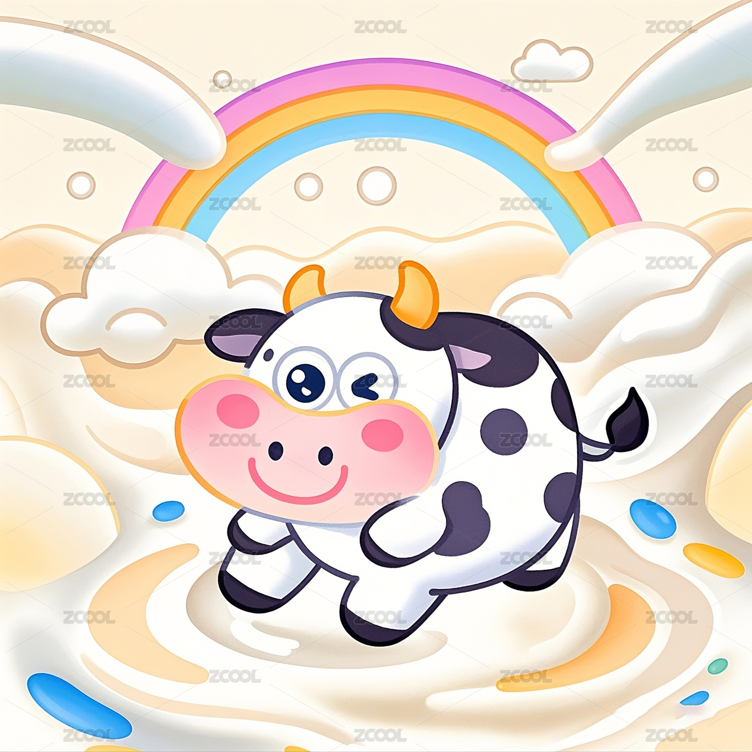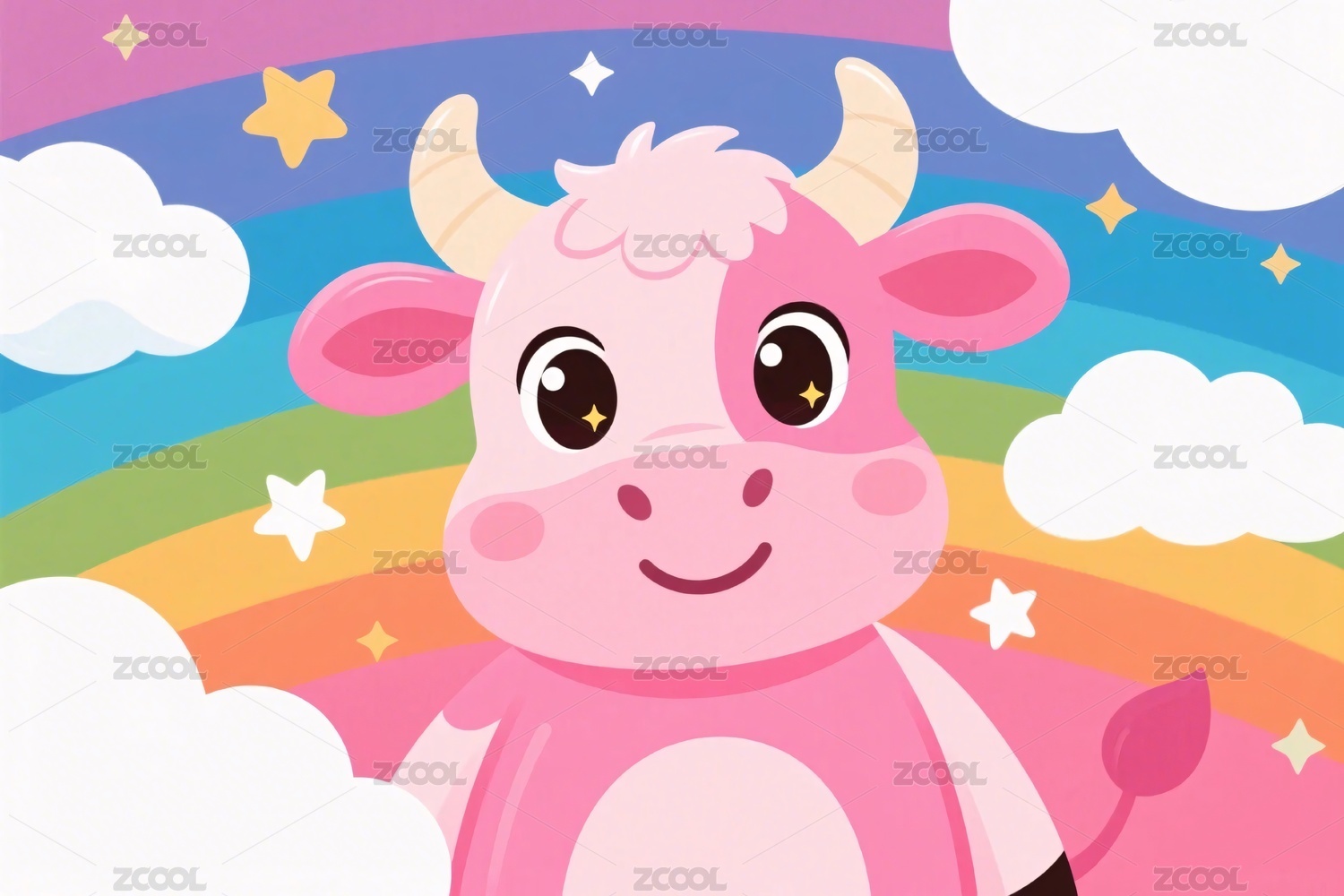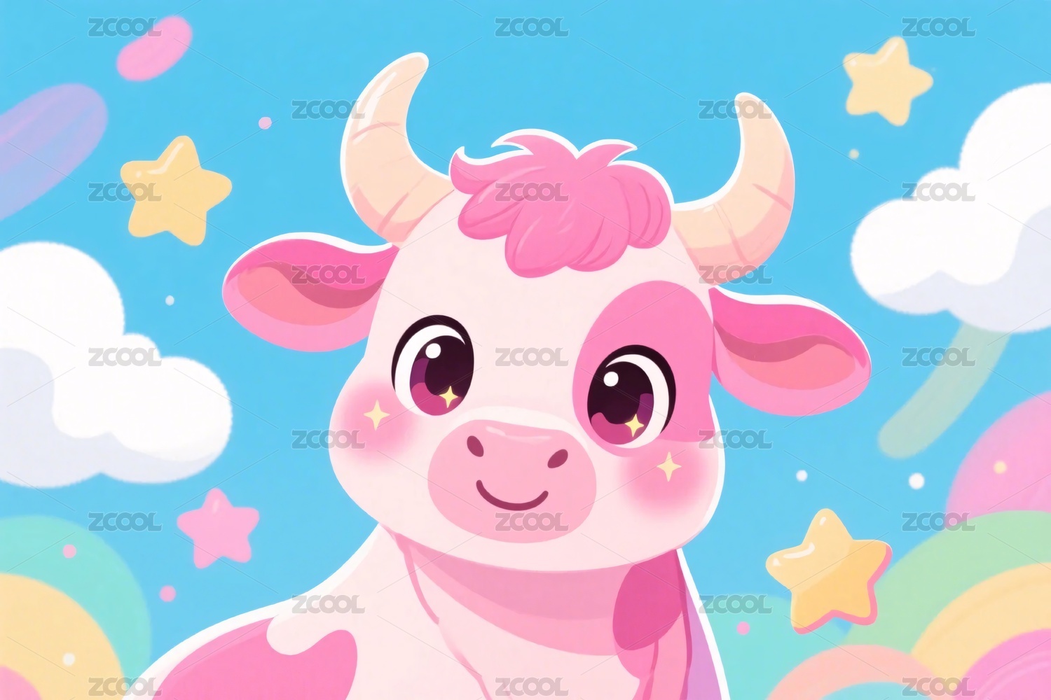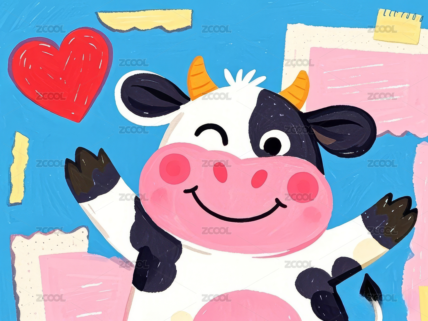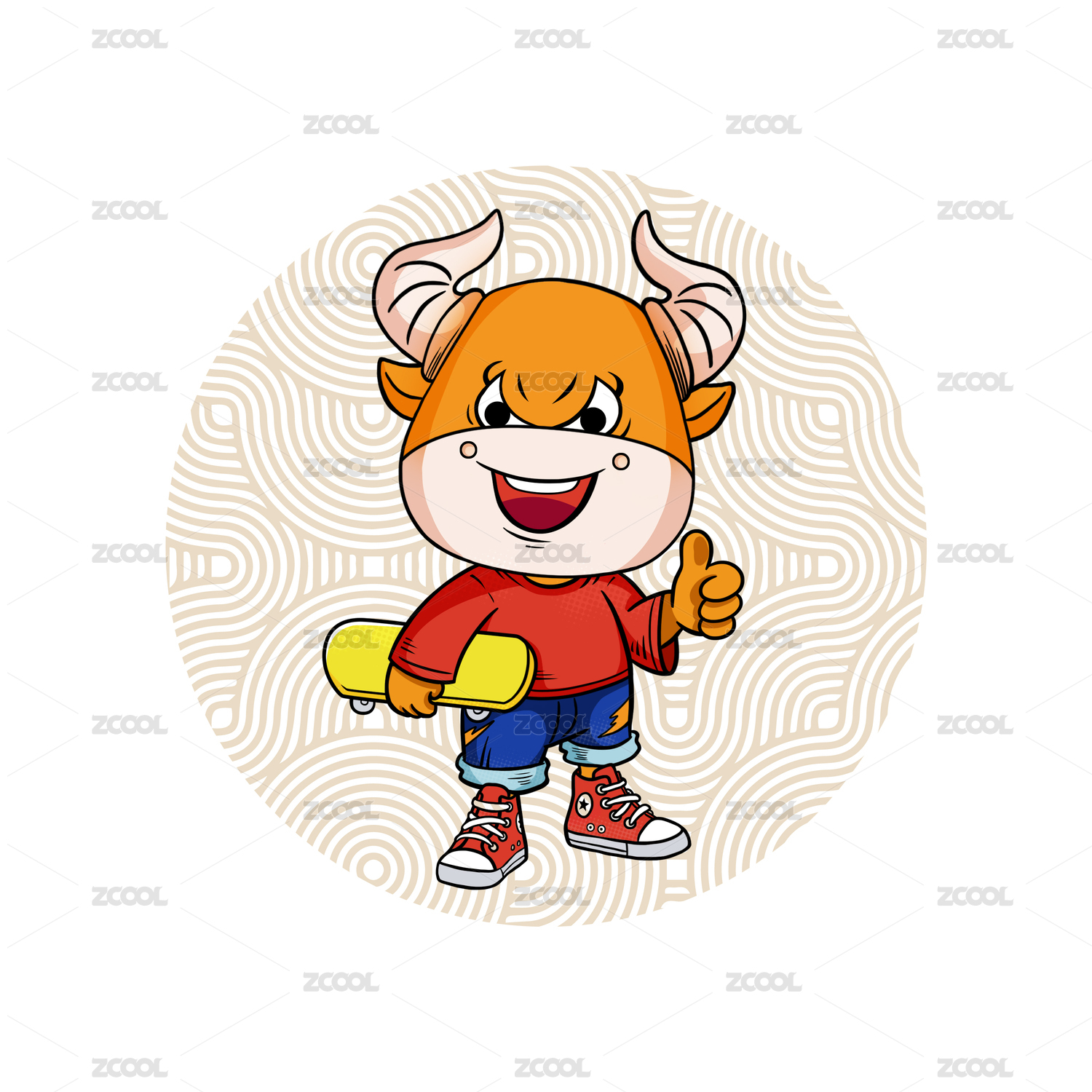 卡通动物牛手拿滑板竖大拇指微笑红球鞋