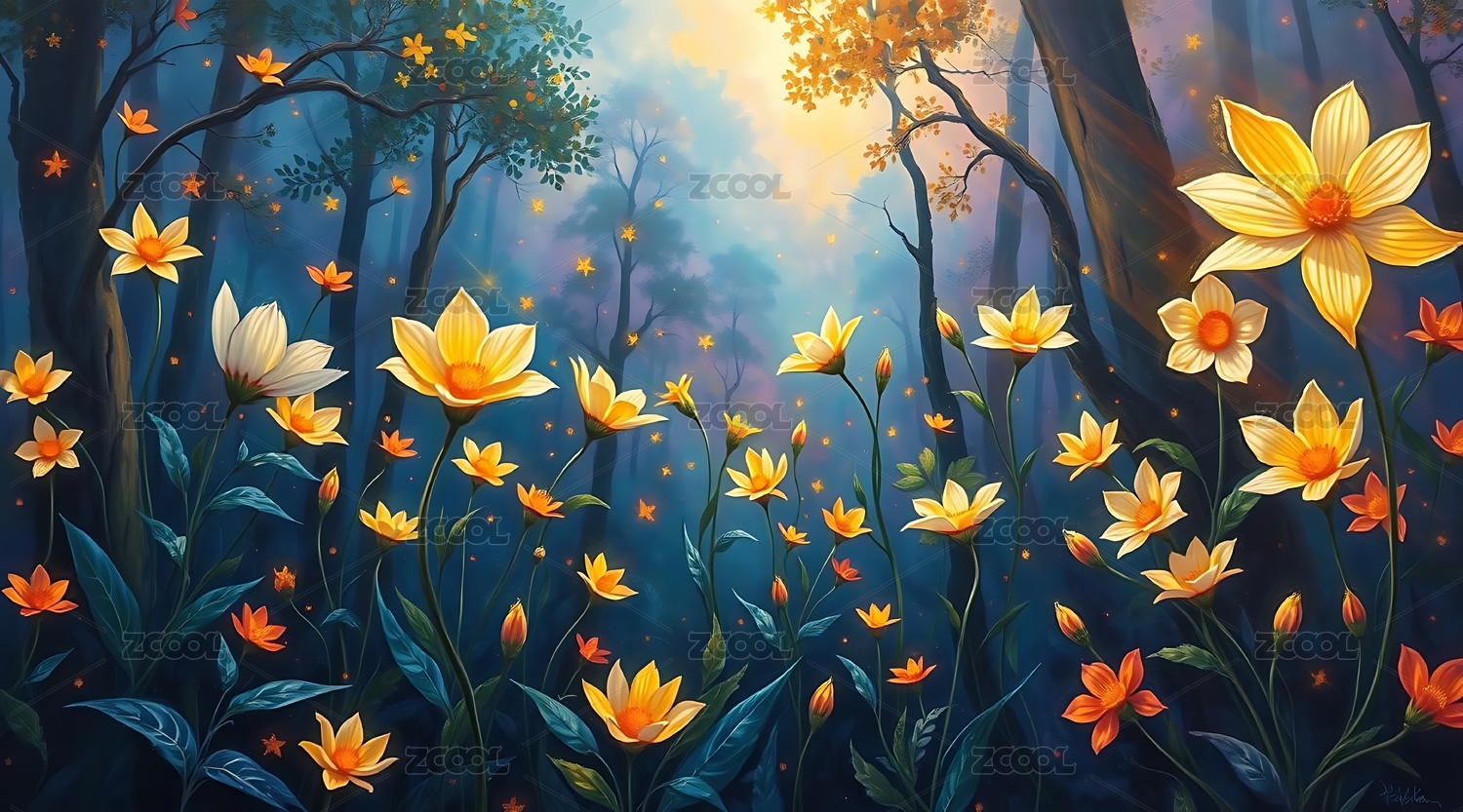 森林秘境中的梦幻花朵