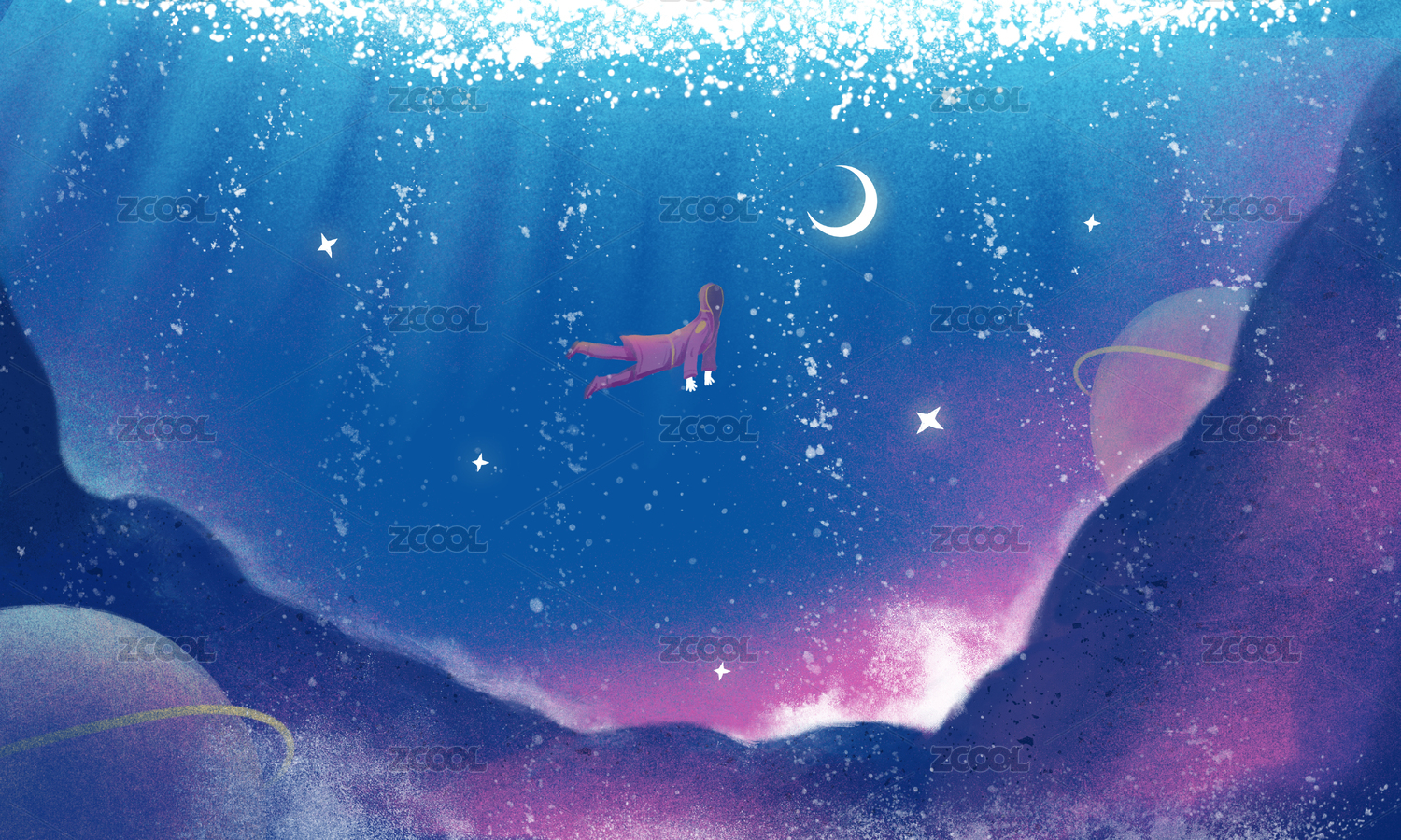 梦幻鲸鱼天空云层治愈系小清新场景梦想插画