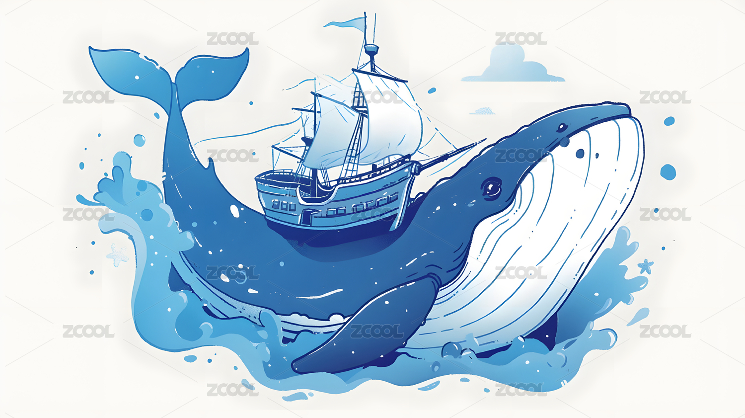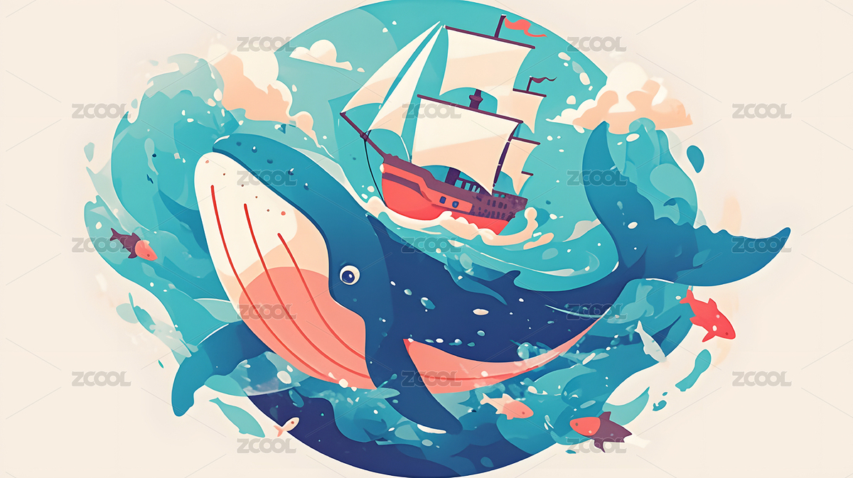 鲸鱼,鱼,船,大船,小船,海洋,动物,海面,可爱,卡通