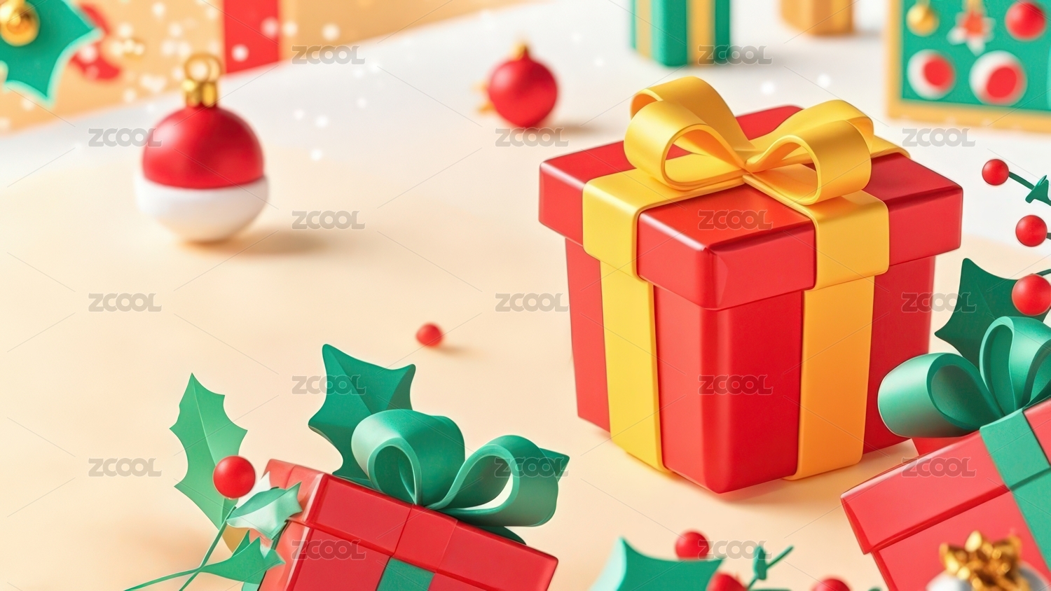圣诞礼盒与装饰球