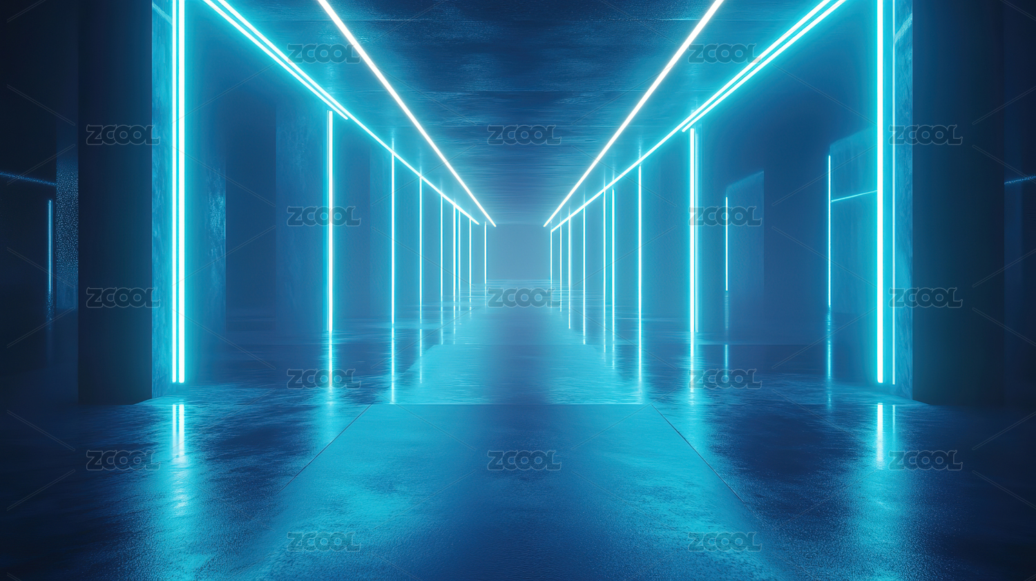 3D渲染科幻延伸蓝色未来科技感空间场景