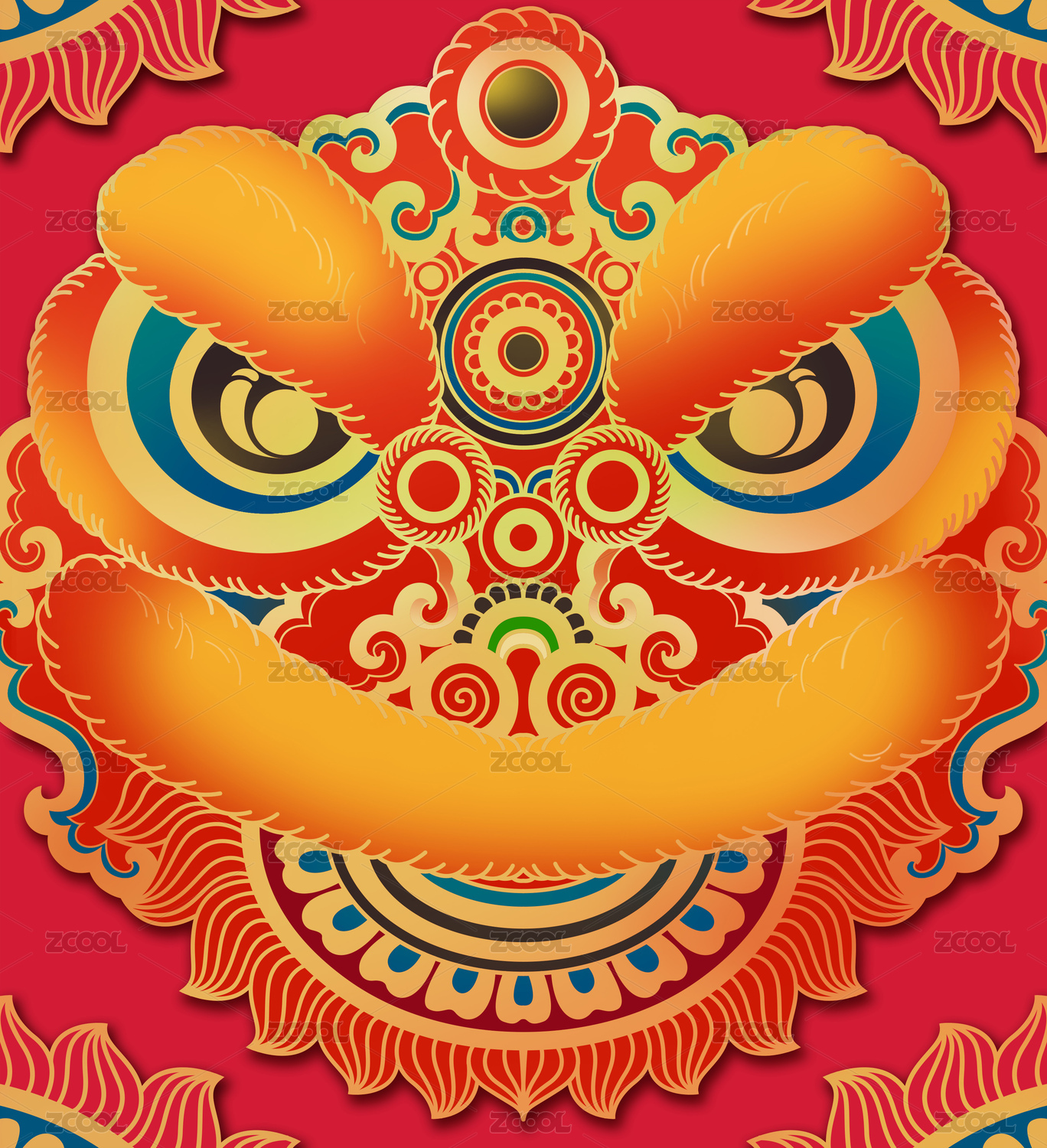 扁平化新年国潮风格醒狮喜庆氛围插画