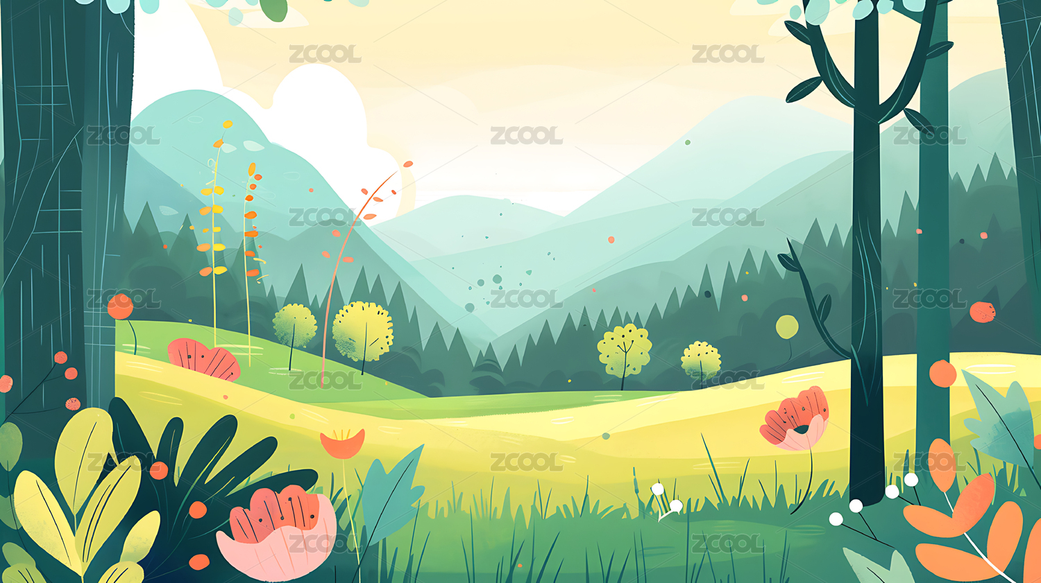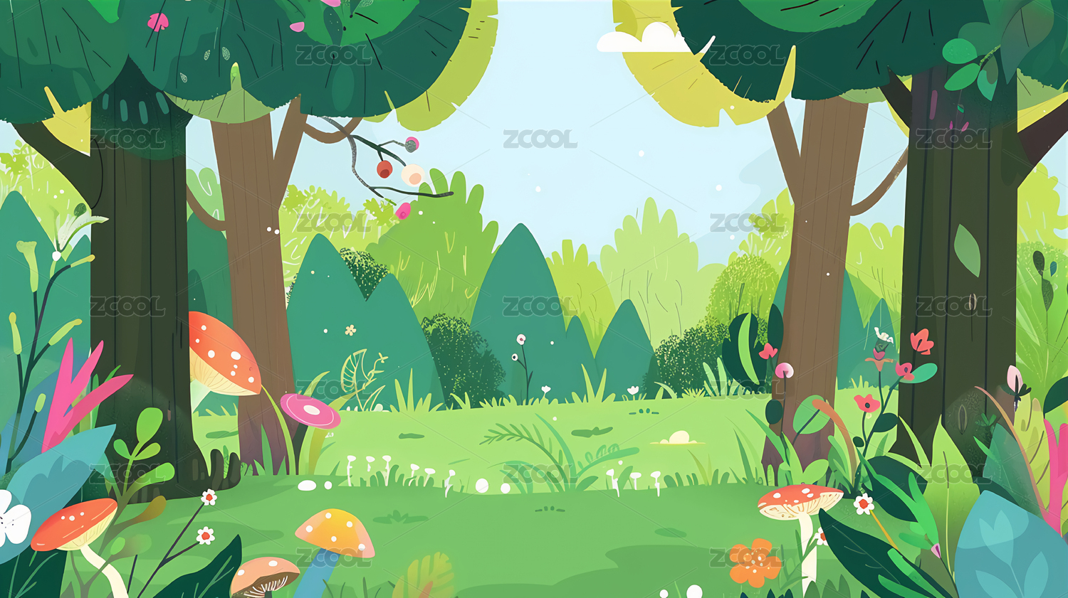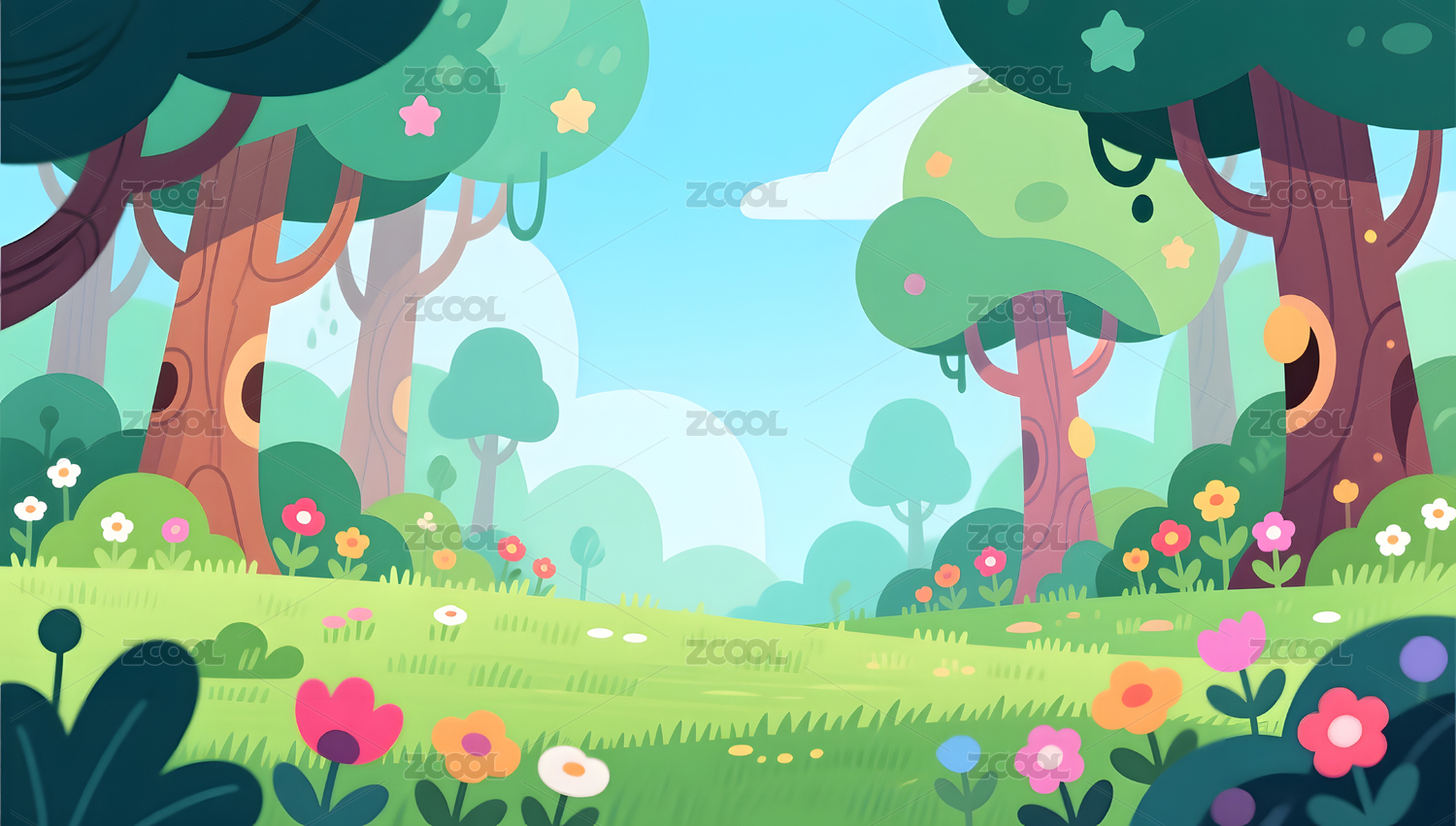 可爱卡通六一儿童节彩旗玩耍场地背景