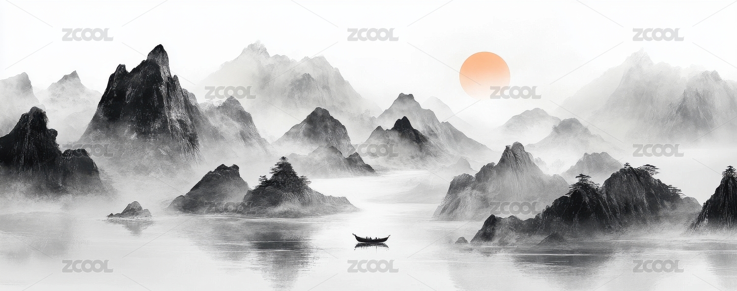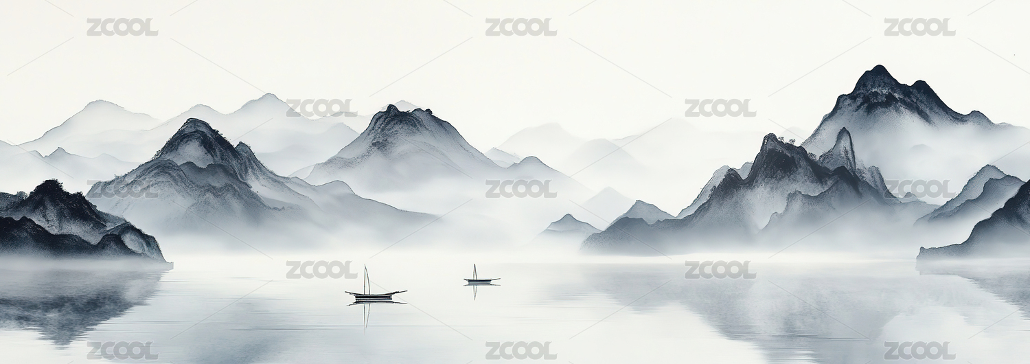 无人,中国文化,新中式风格,插画,淡雅,中国画,装饰画,高山,自然,背景