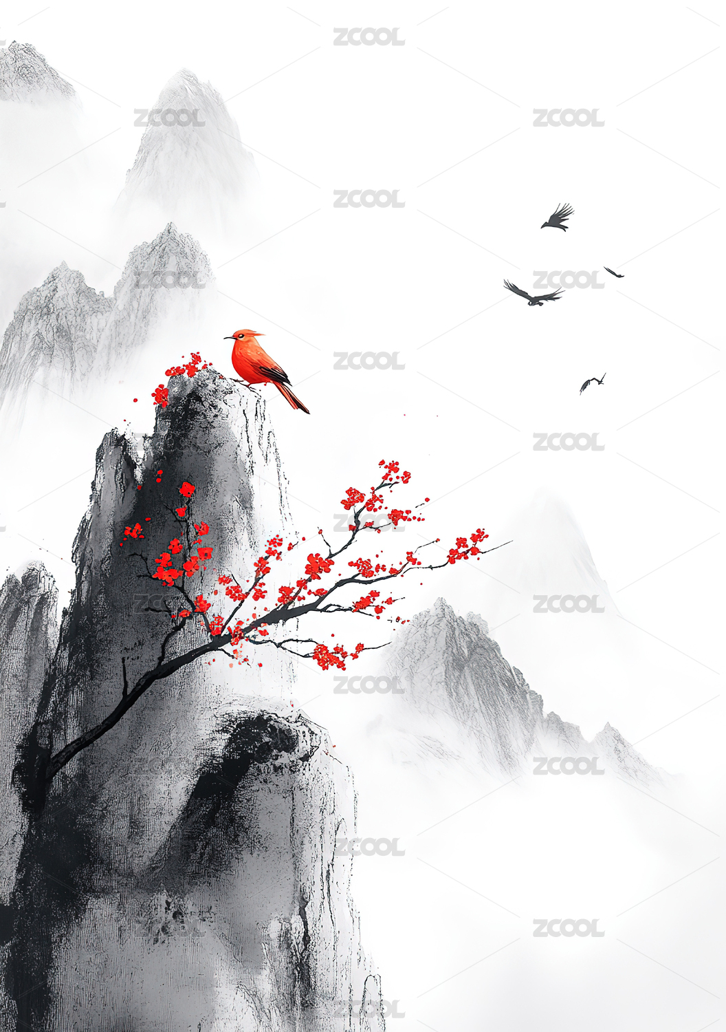 中国风竖版水墨山水画