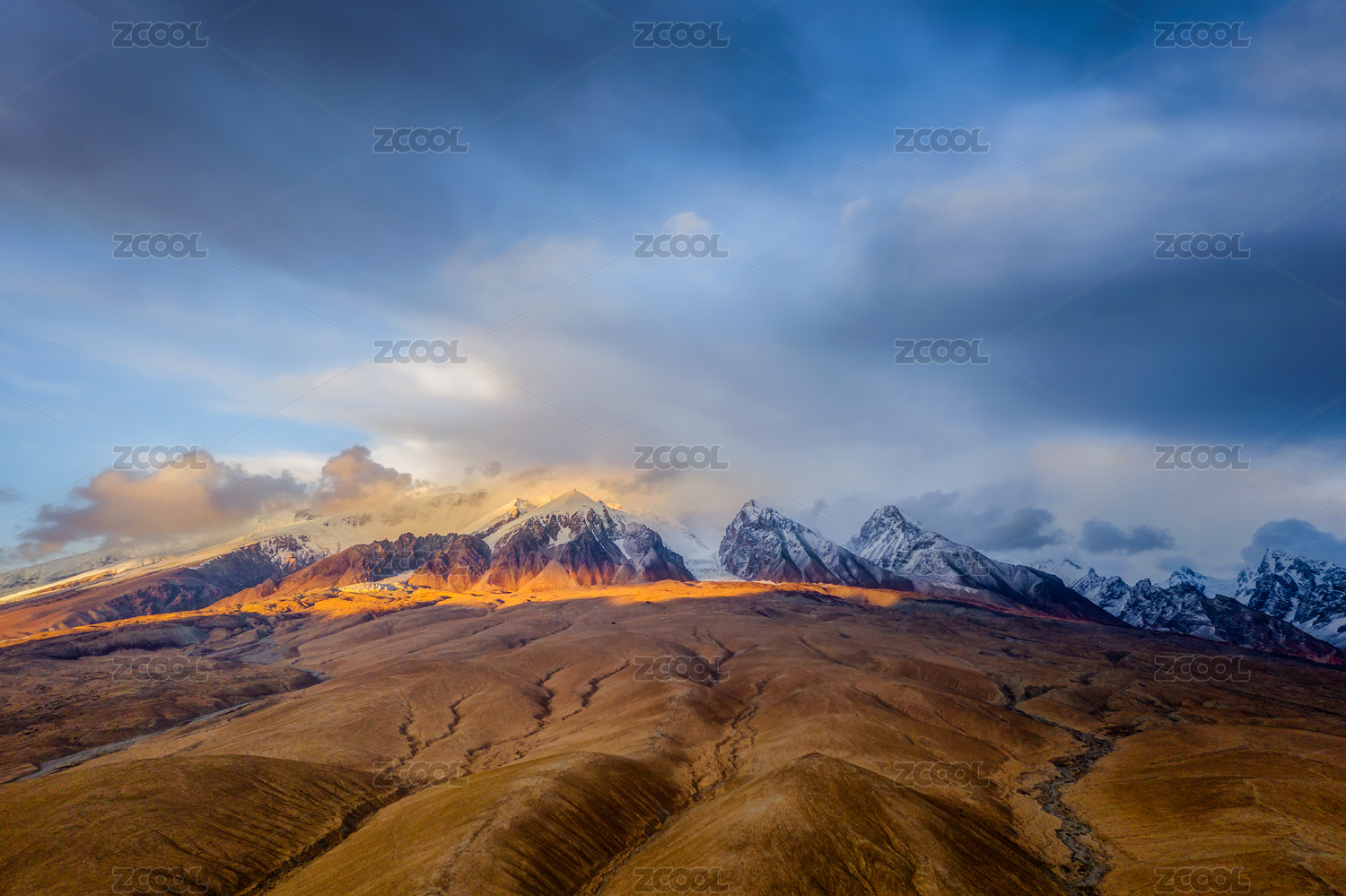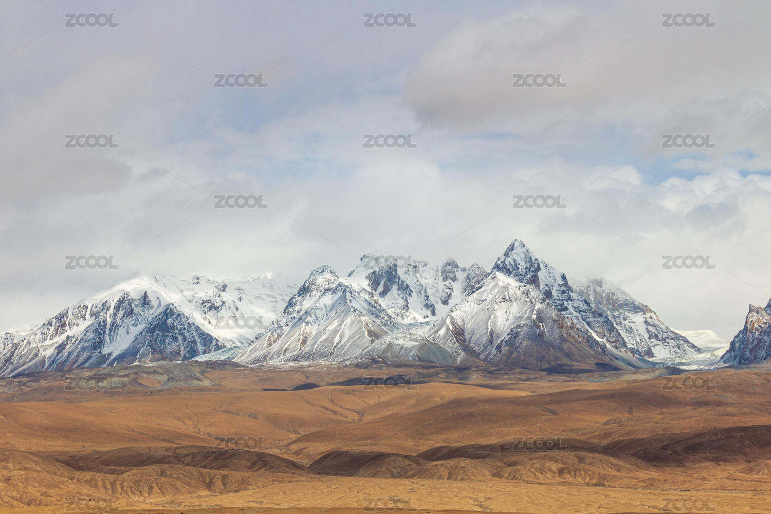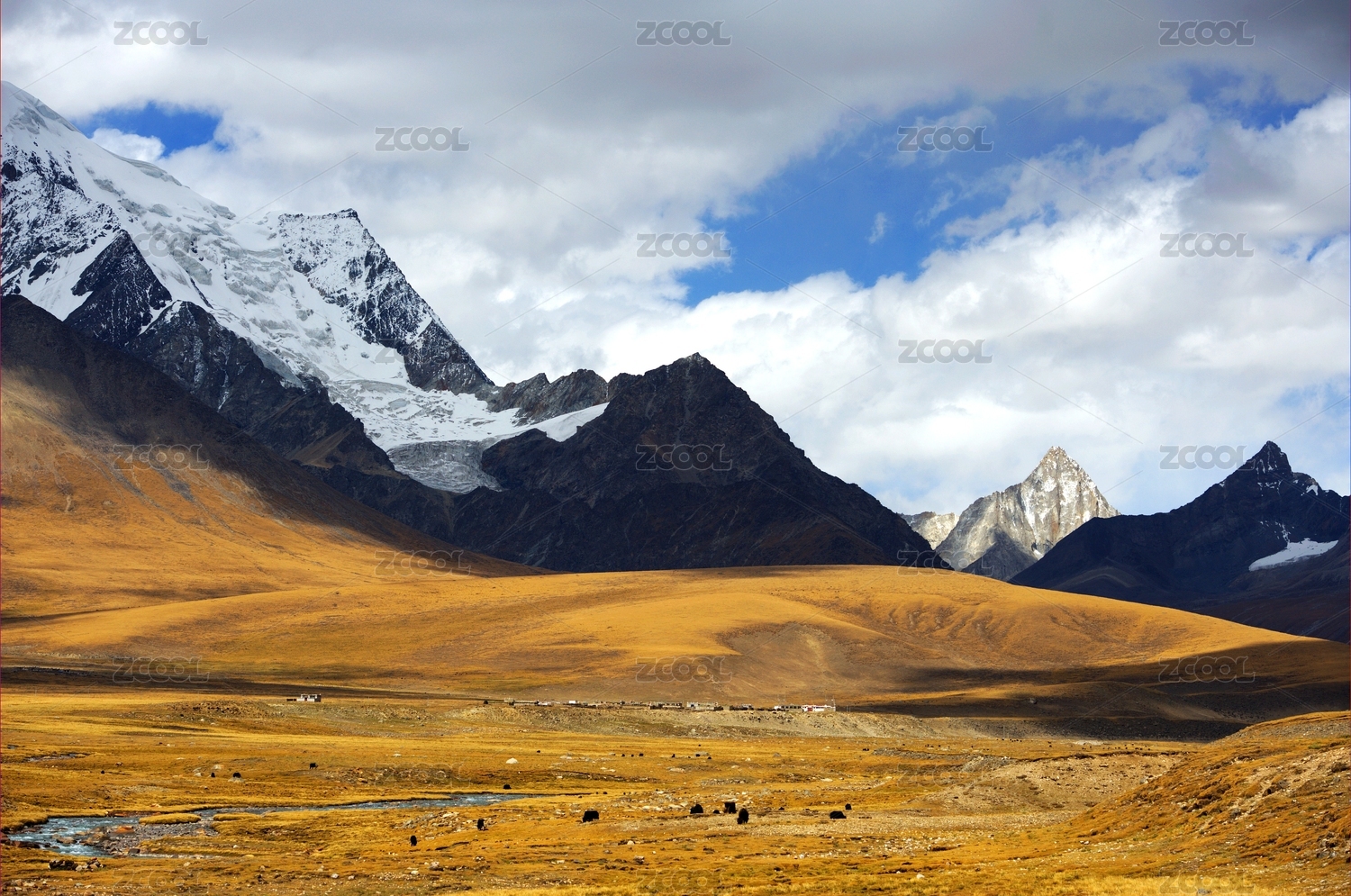 中国西藏阿里高原草原无人旷野雪山蓝天云海风光