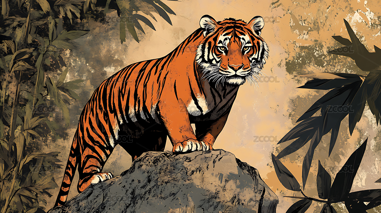 中国风传统文化艺术纹样老虎祥瑞美术设计
