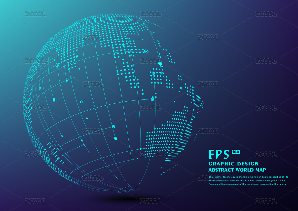 点和线连接组成的抽象地球,代表互联网、高科技,全球化、国际化