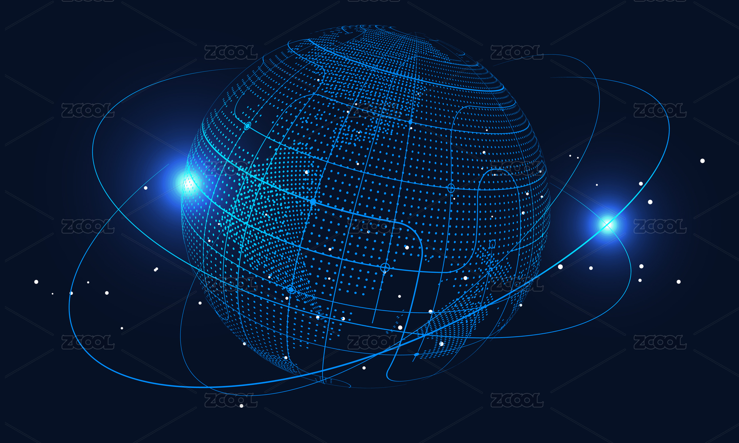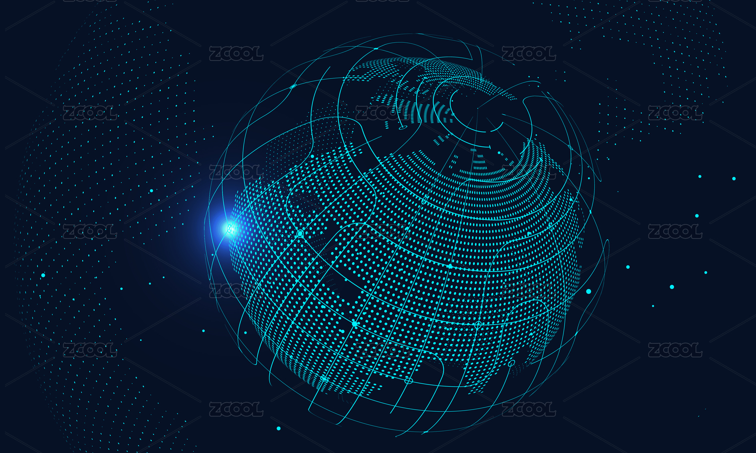 点阵组成的抽象概念地球 互联网与云计算背景 人工智能与大数据