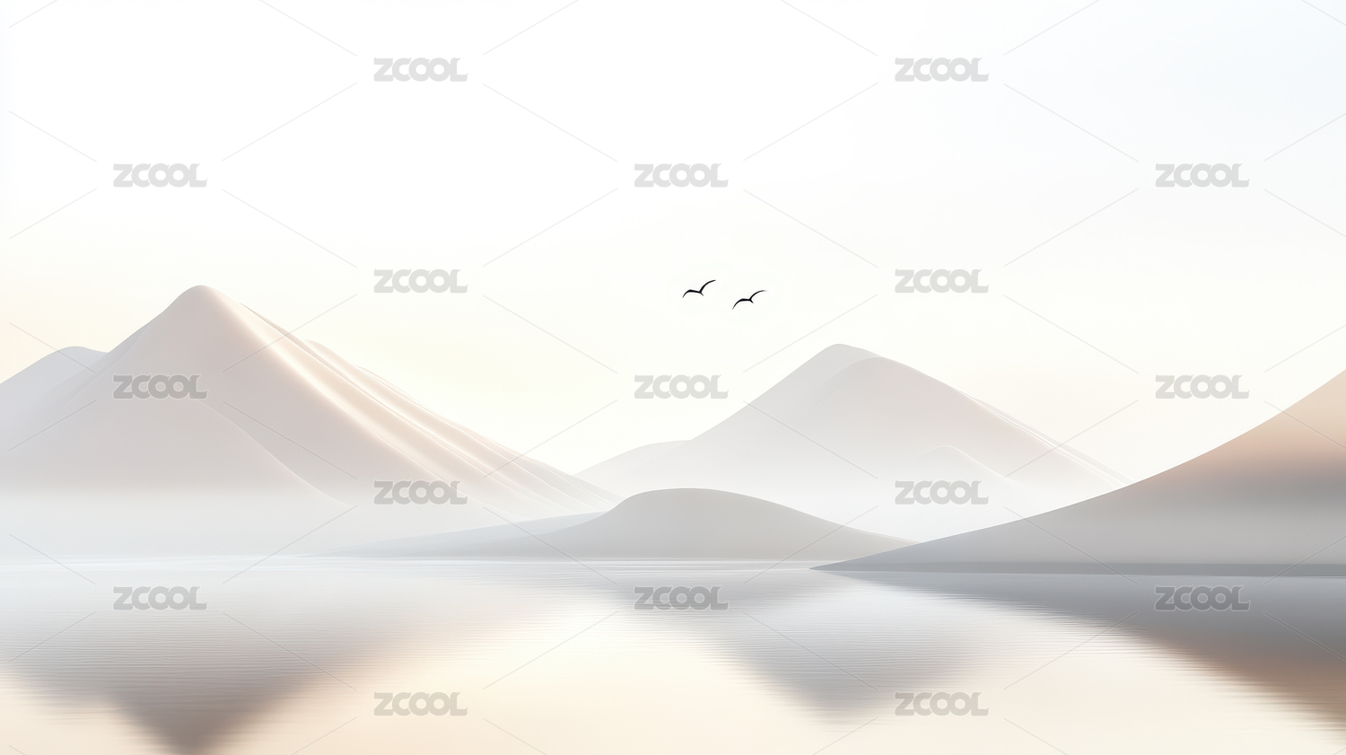 简洁白色山景与水面倒影