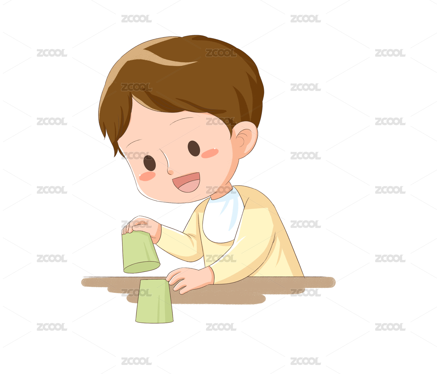 卡通益智游戏彩色字母积木可爱男孩教育插画