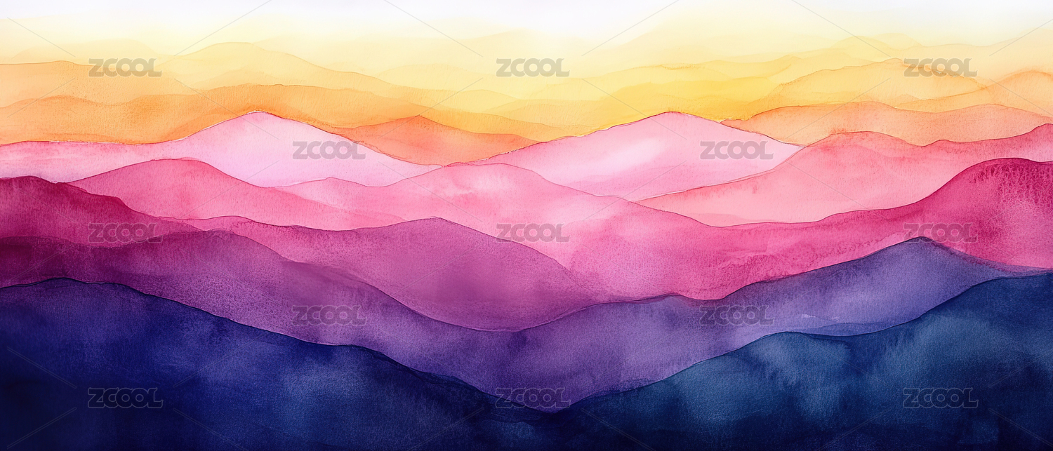 梦幻般的山峦水彩画