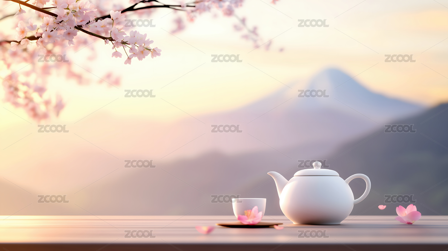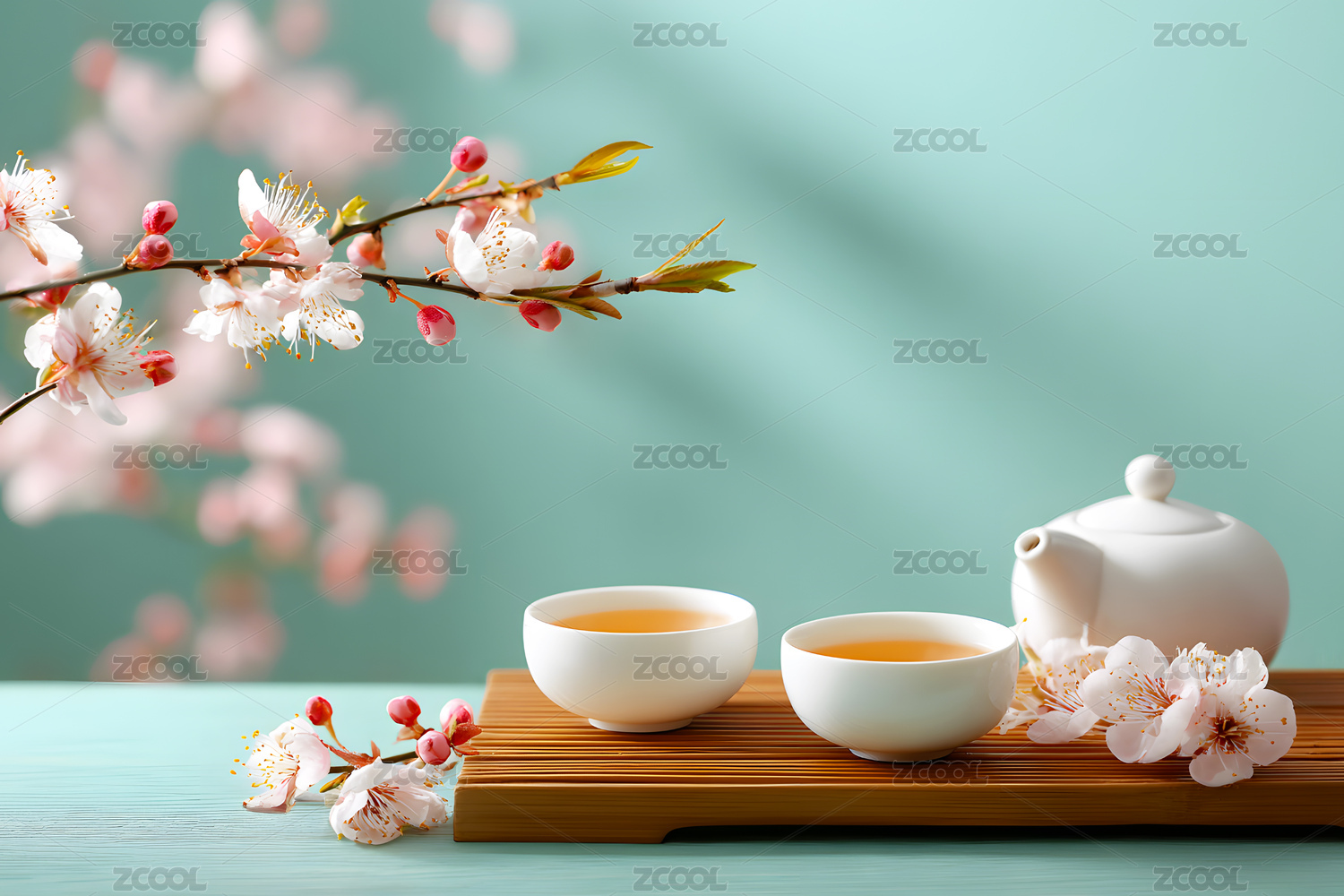 质感,茶具,茶壶,茶杯,托盘,户外,自然,景色,绿色,阳光