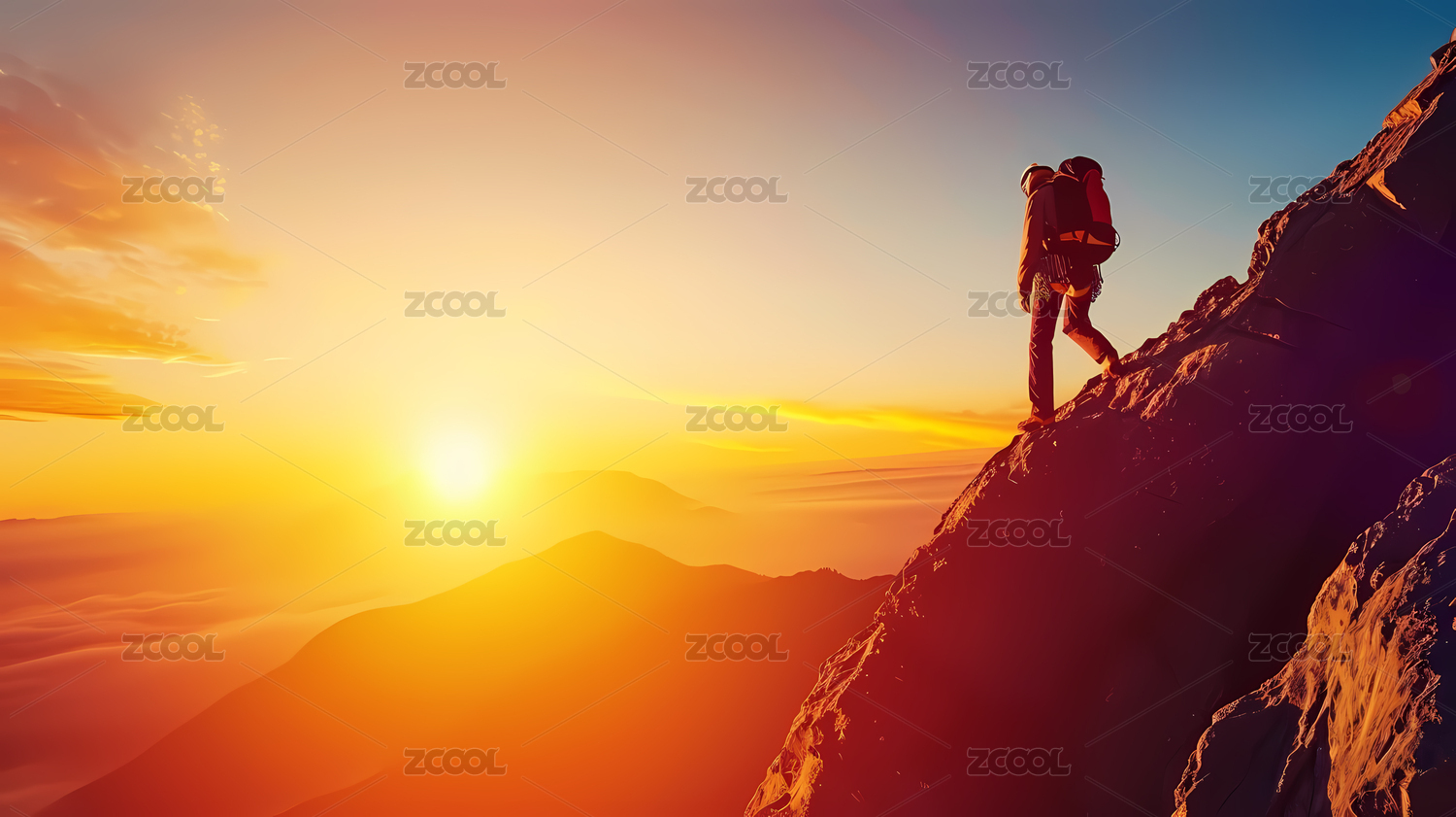 商业企业文化夕阳中勇敢无畏的攀登者