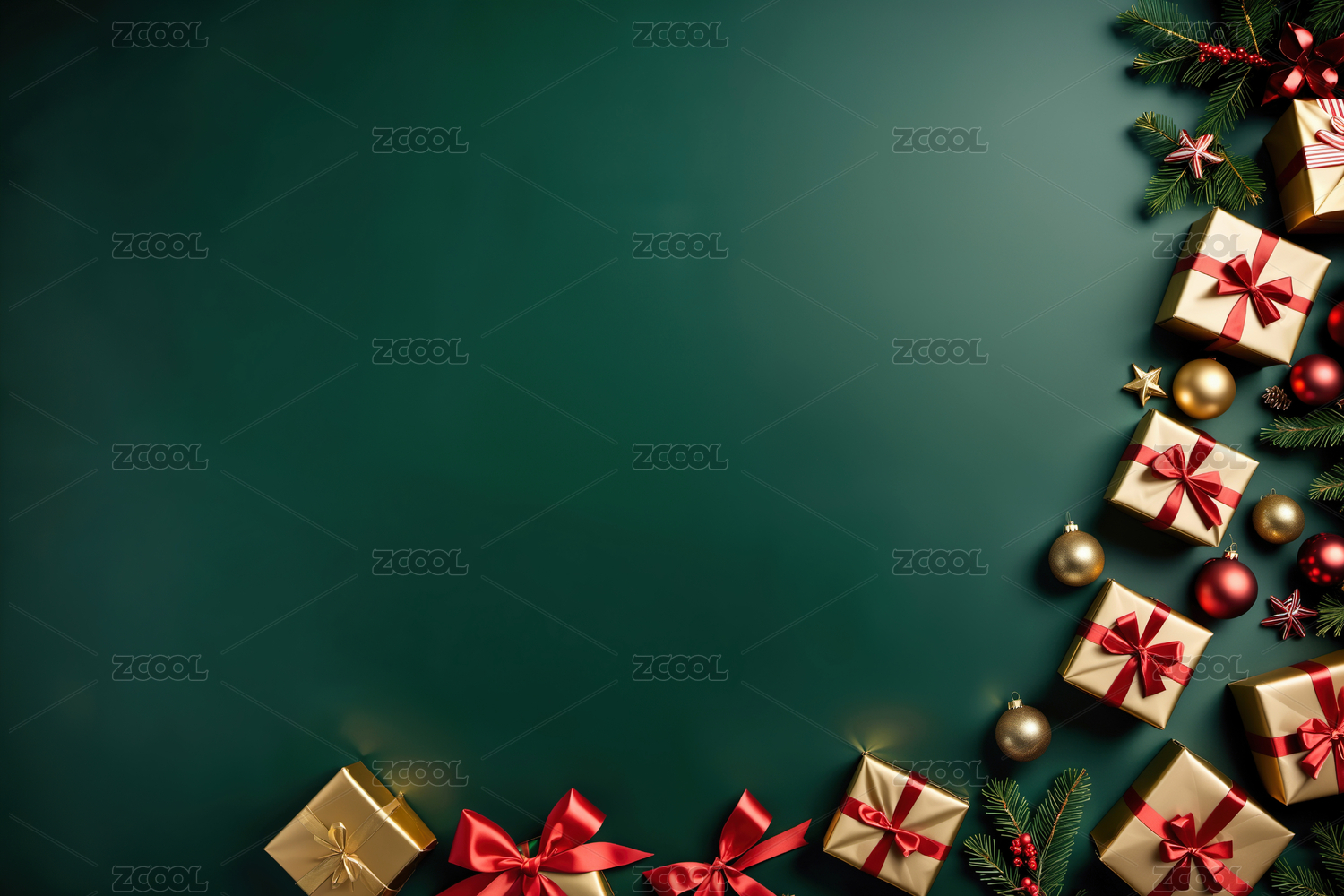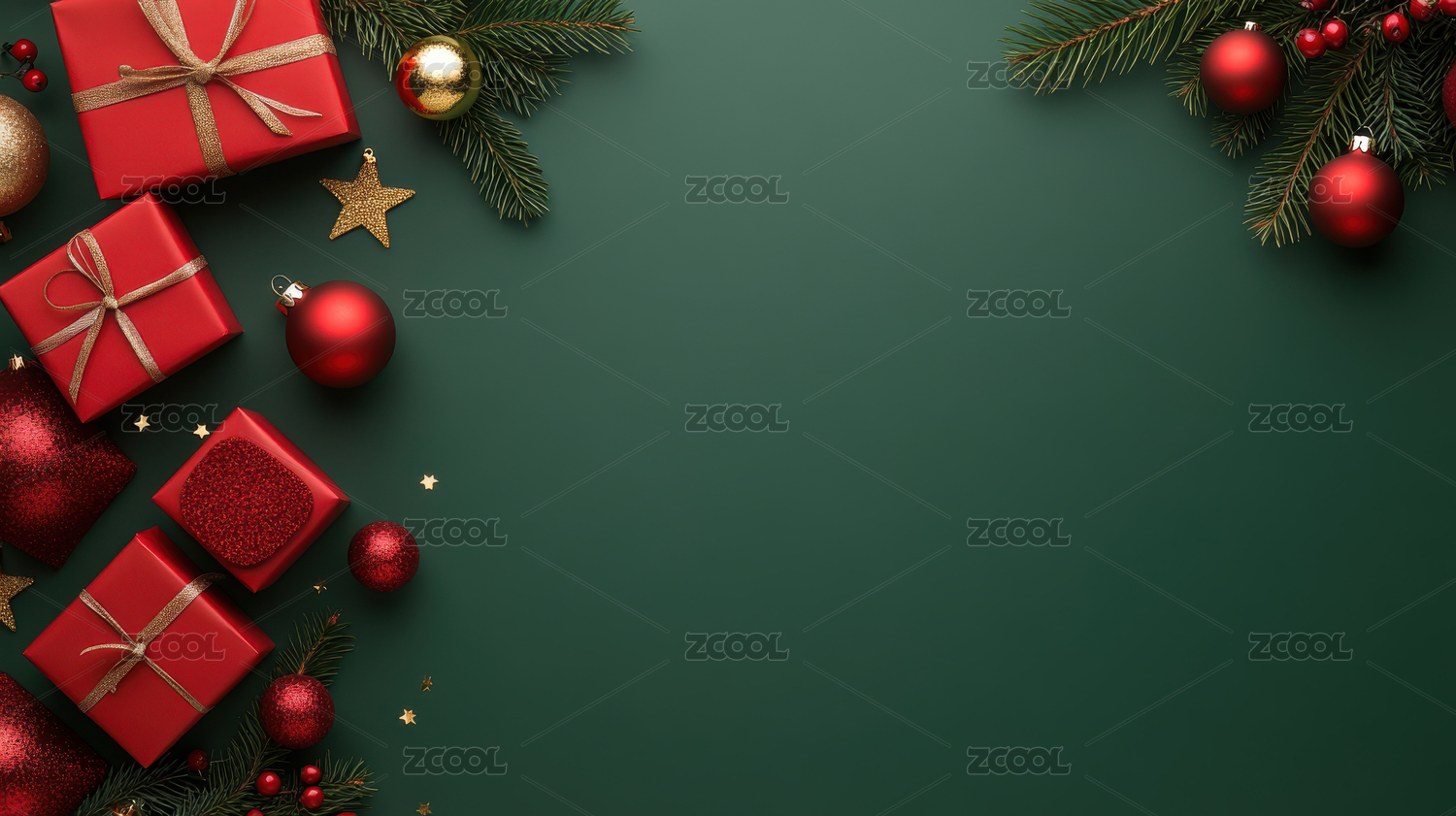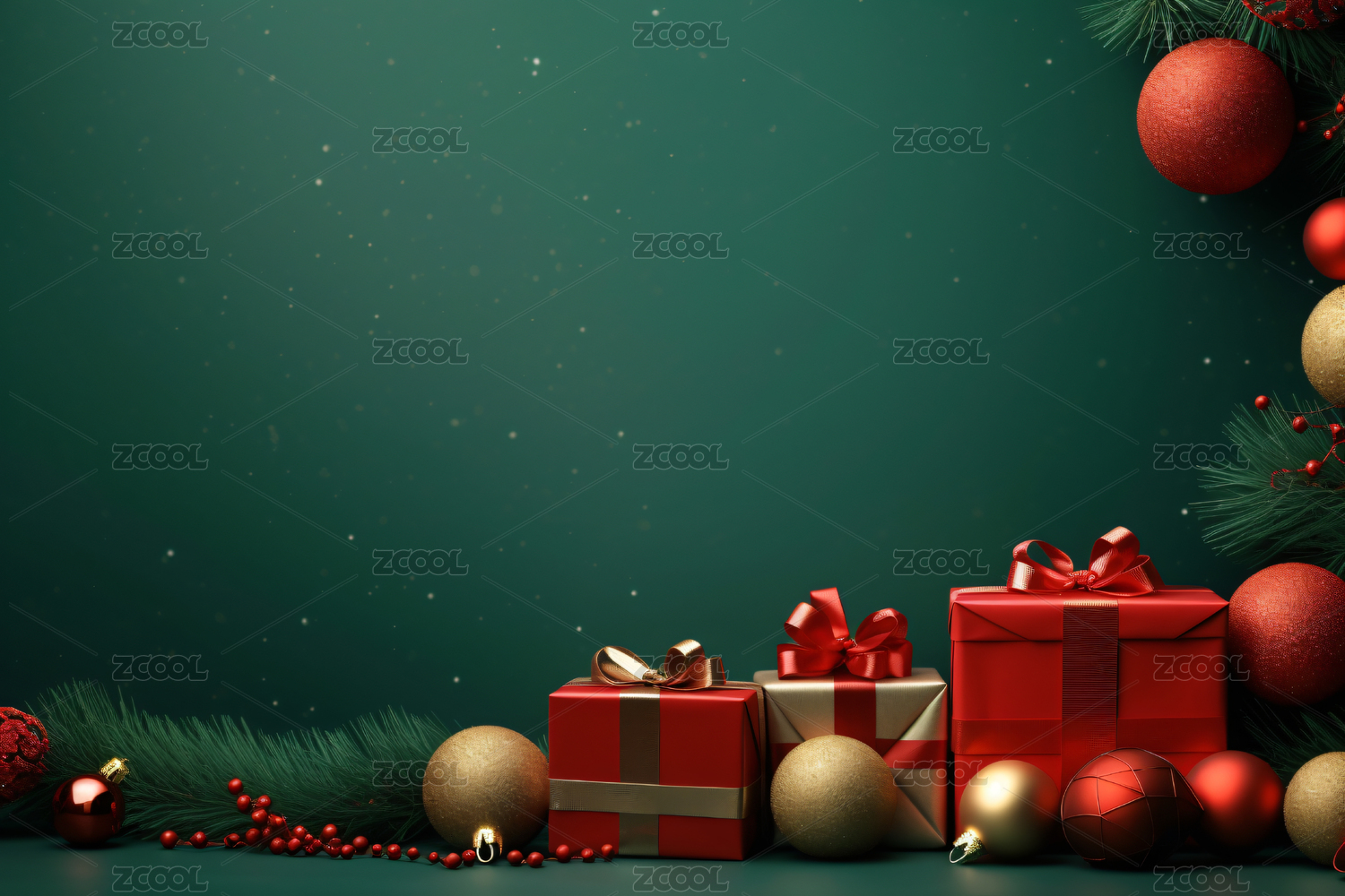 圣诞礼物,灰色背景,红色礼物盒,绿色礼物盒,白色礼物盒,金色丝带,红色丝带,金色蝴蝶结,雪花图案,圣诞球