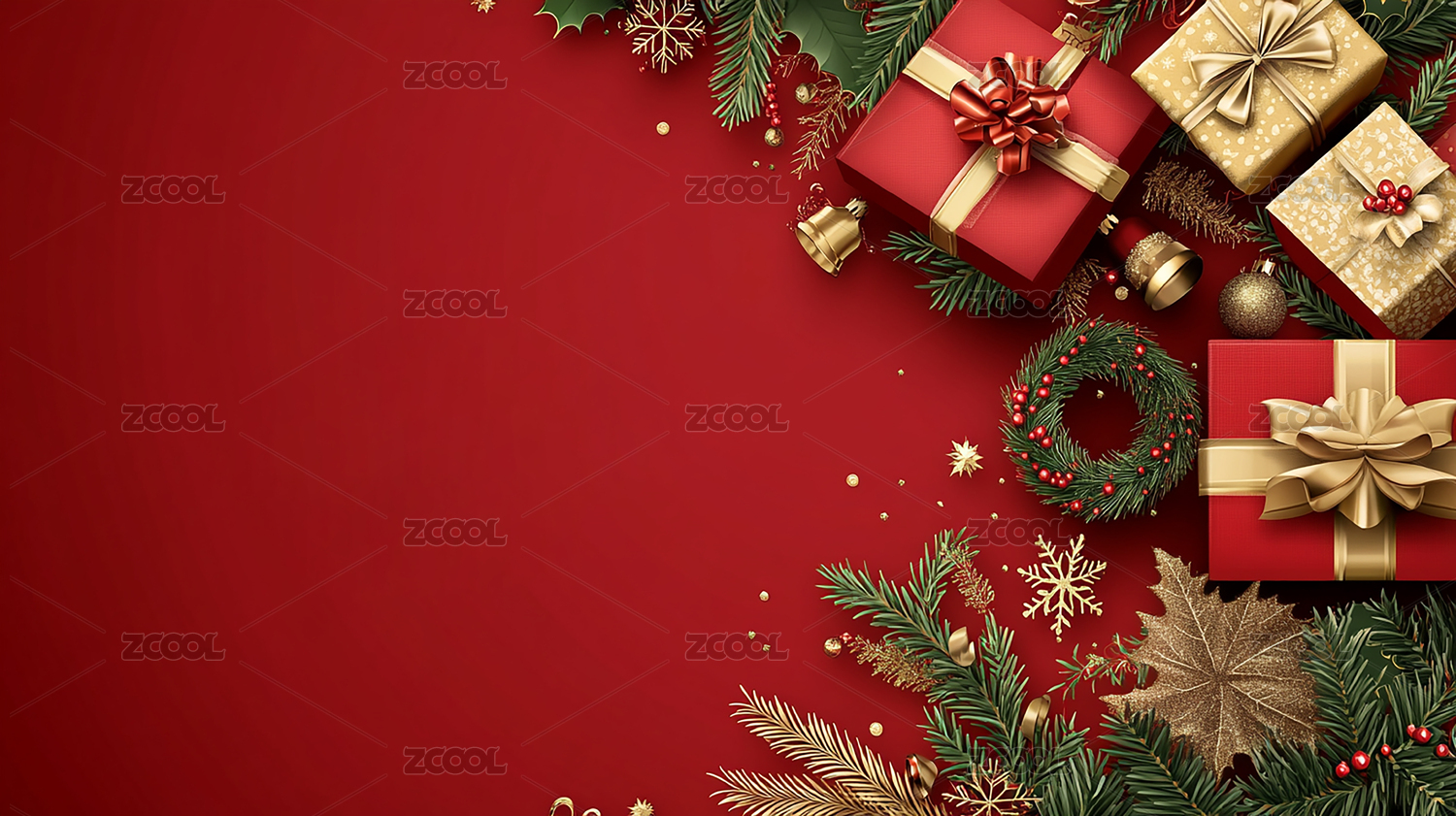 圣诞节矢量风格喜庆礼盒装饰品背景