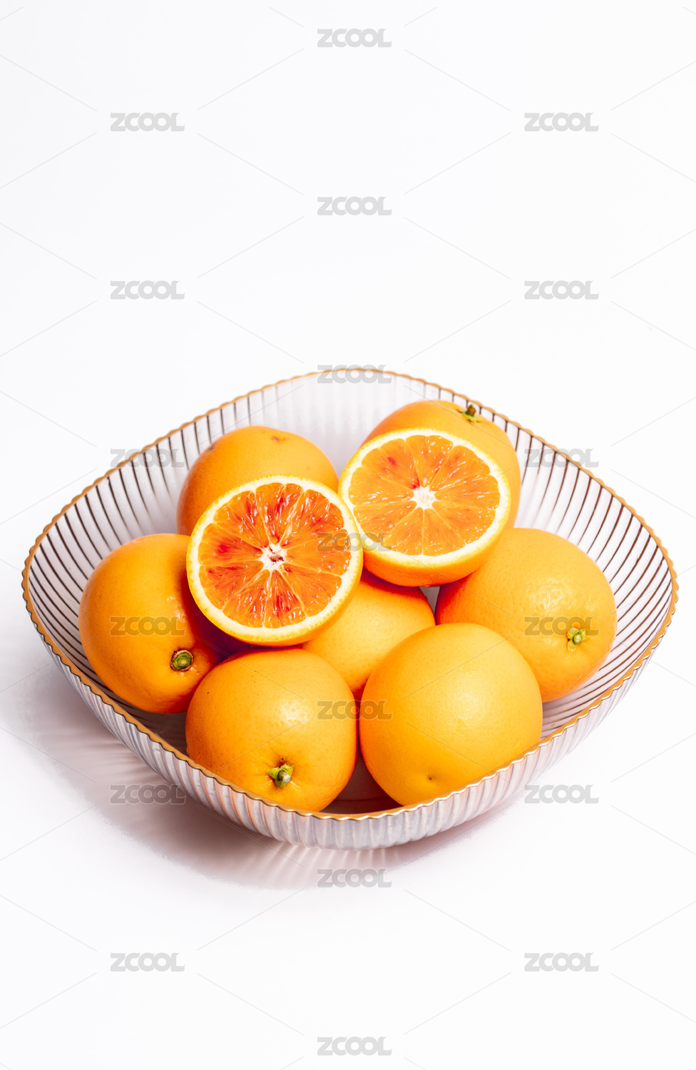 白底上碗的橙子