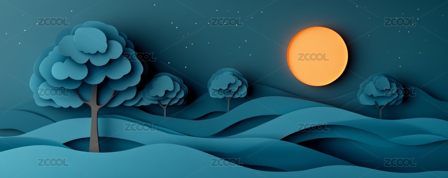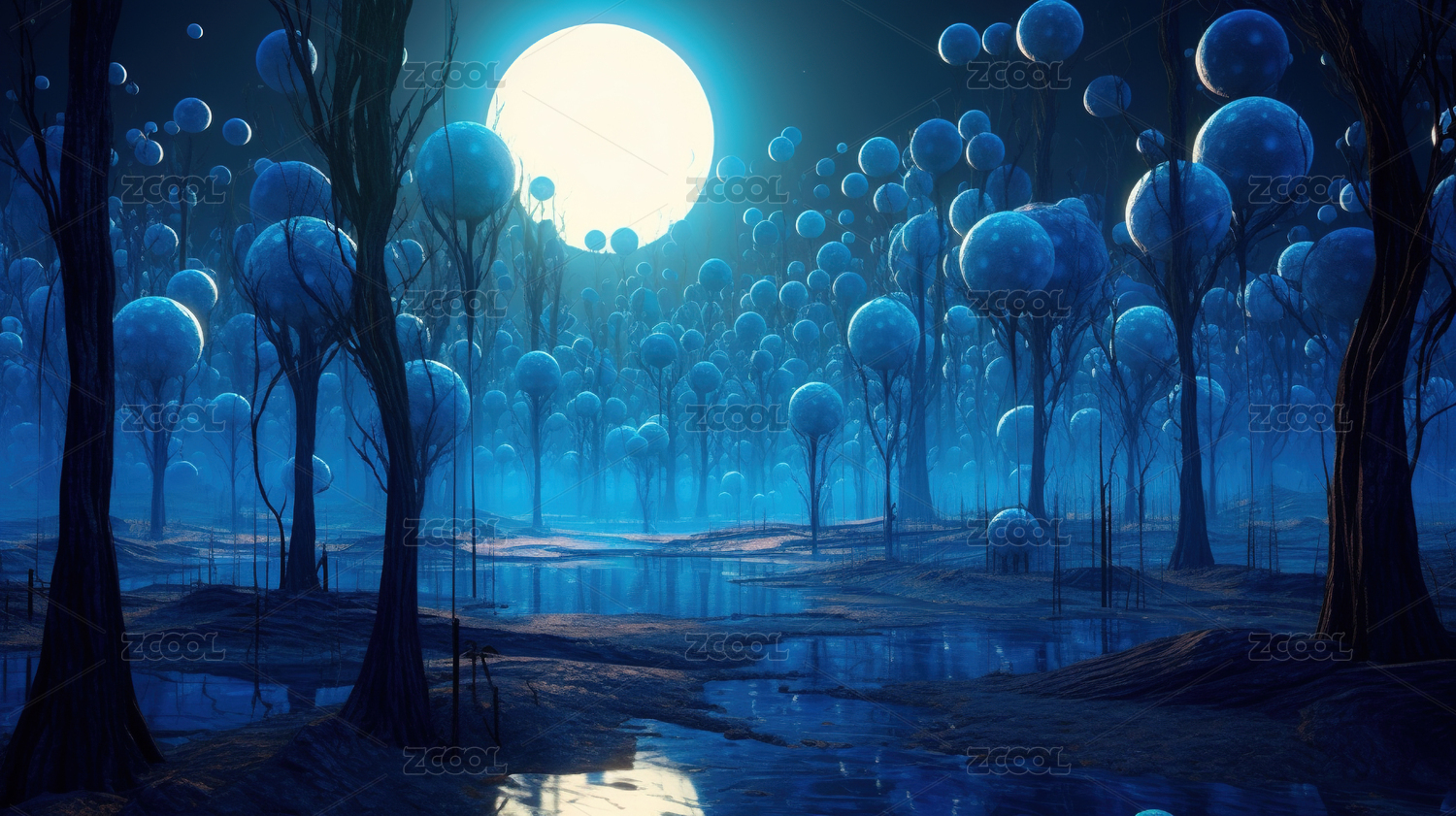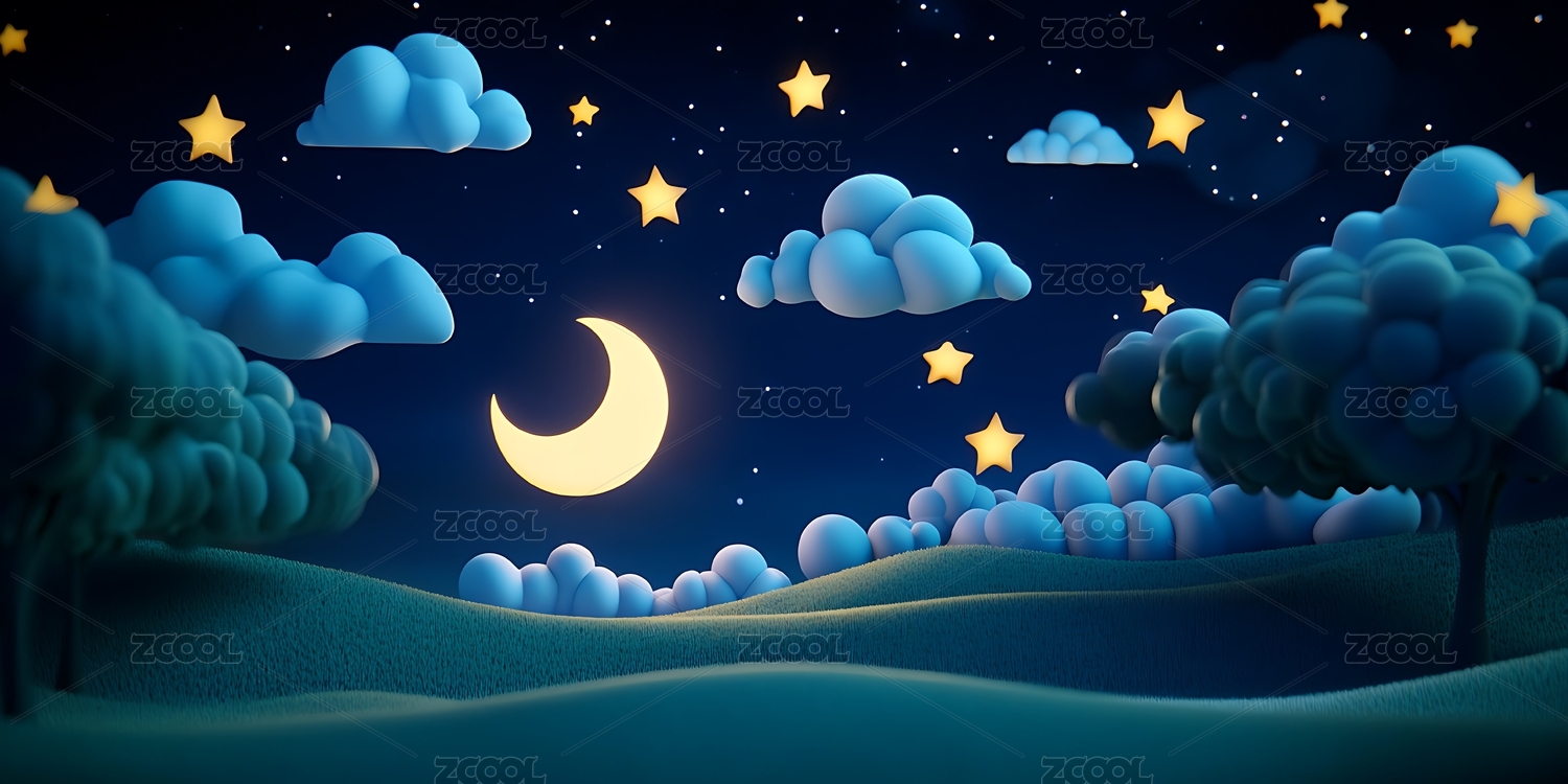 夜空,满月,树木,森林,云朵,雪地,星星,梦幻,自然