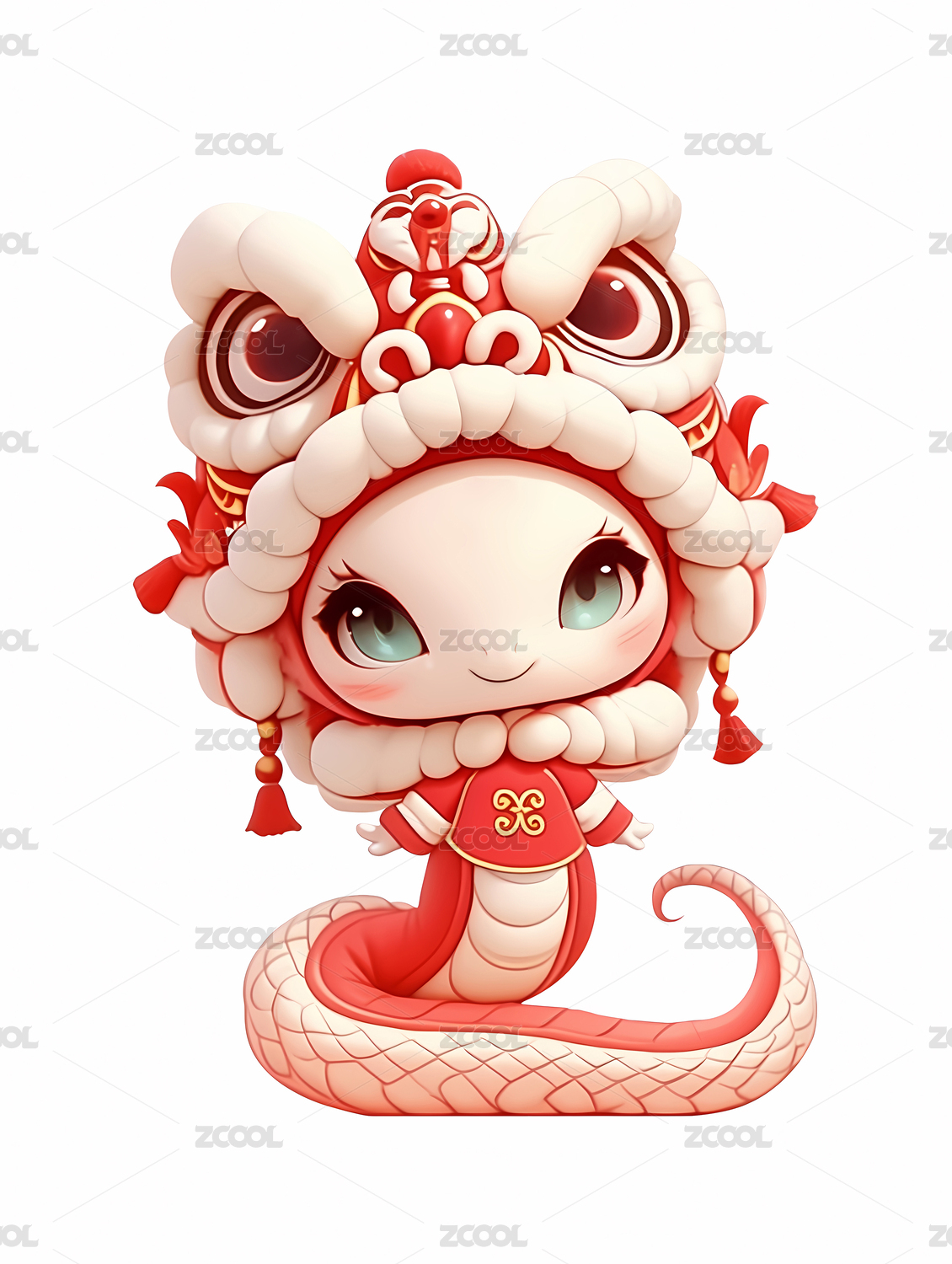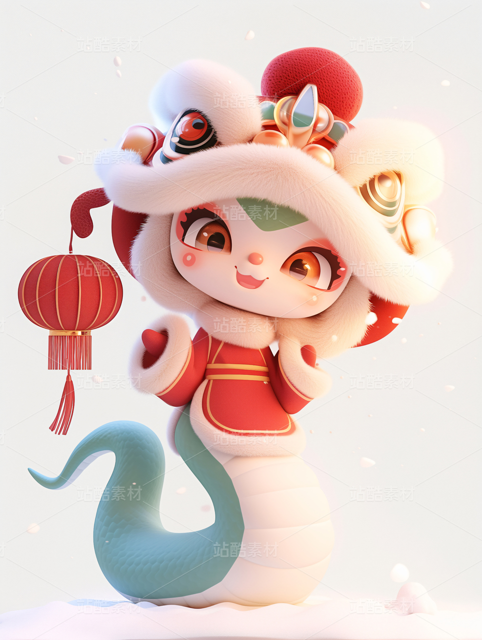 蛇年带着舞狮帽的蓝色可爱小蛇吉祥物
