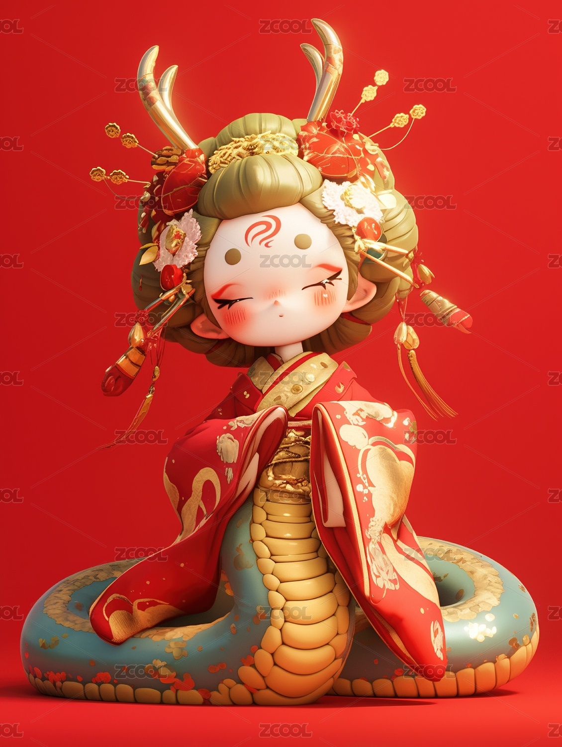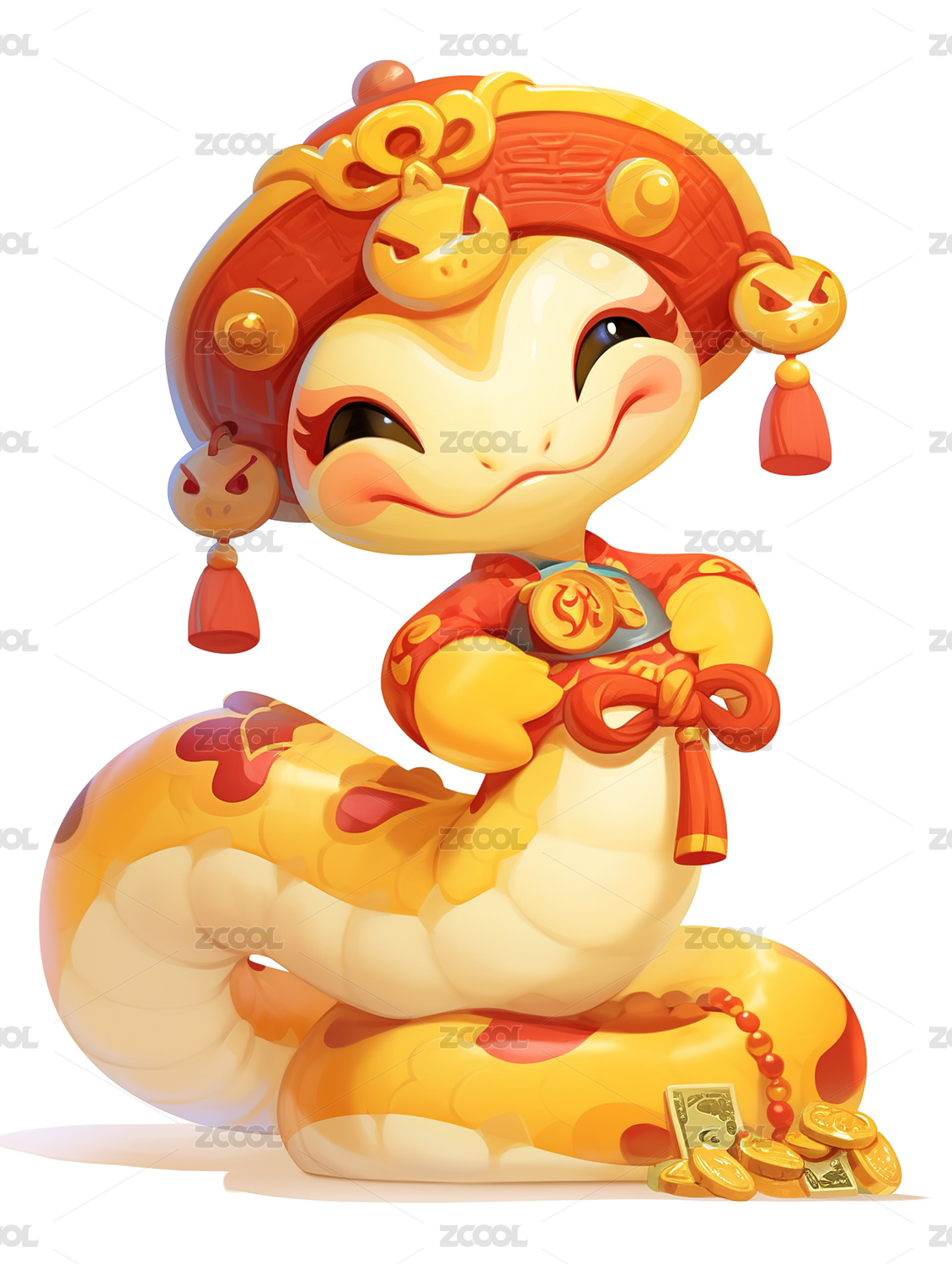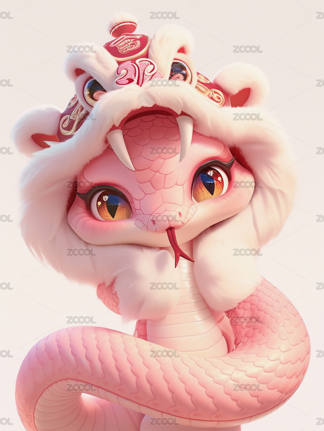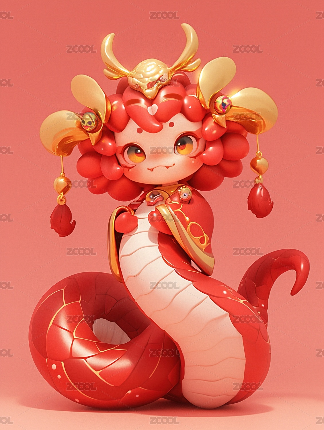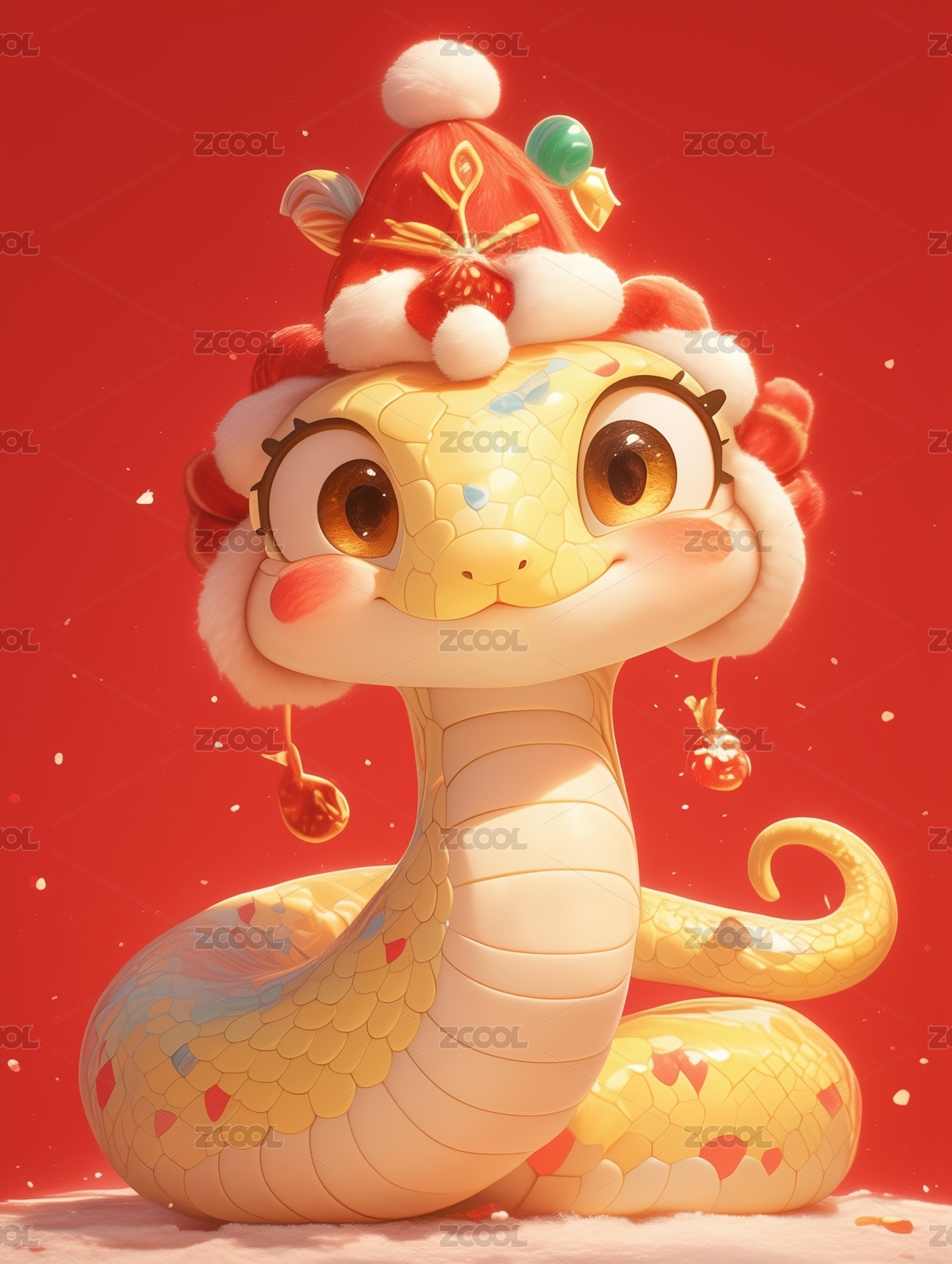 戴花环的3D卡通可爱小蛇蛇年背景插画