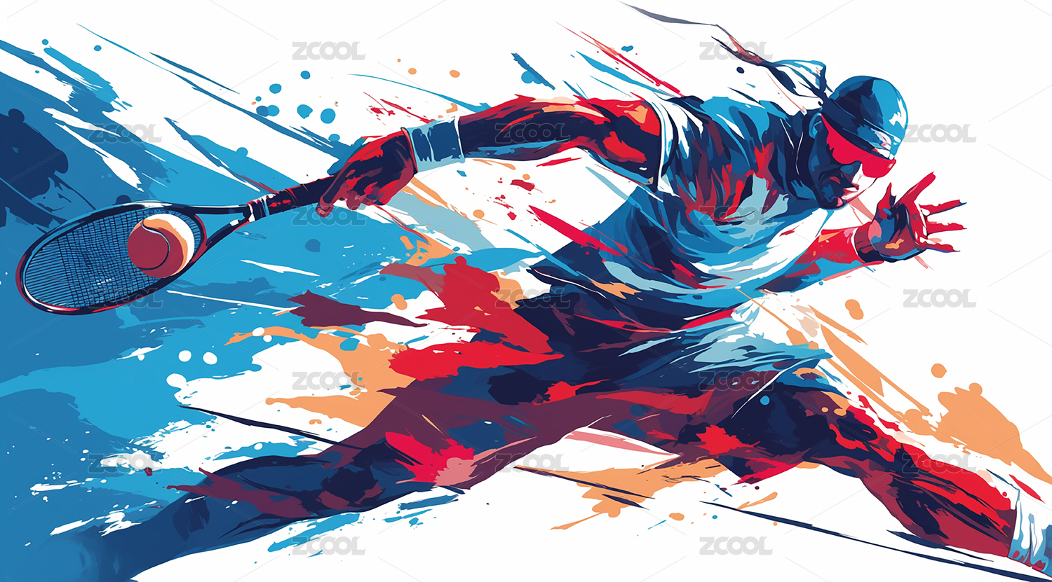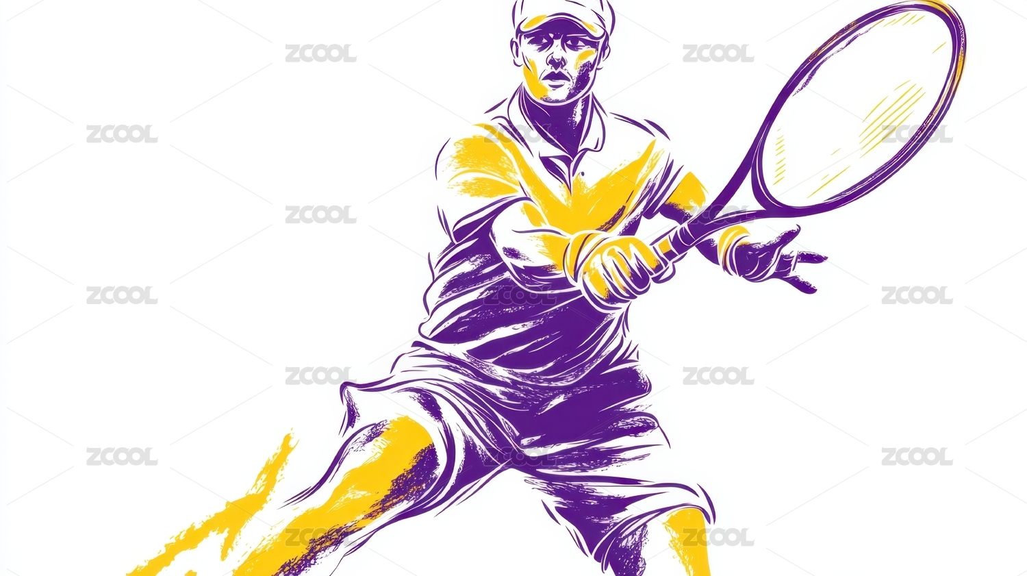 国风,中国文化,水彩,水墨,插画,男性,打网球,帽子,体育,运动