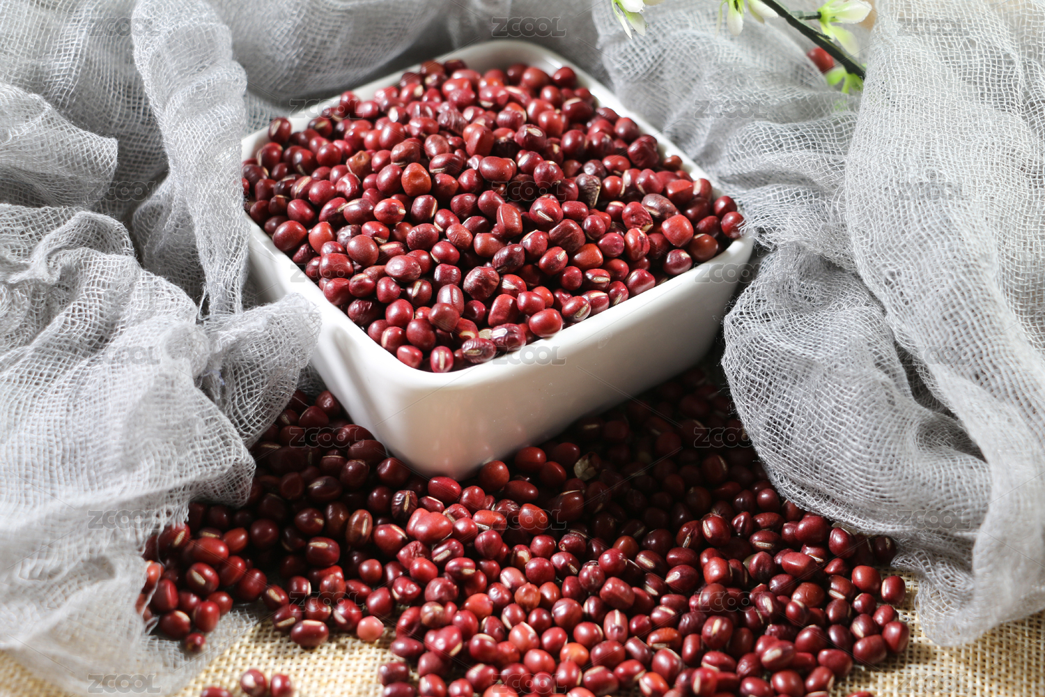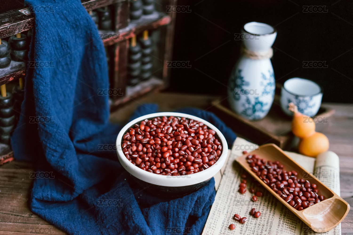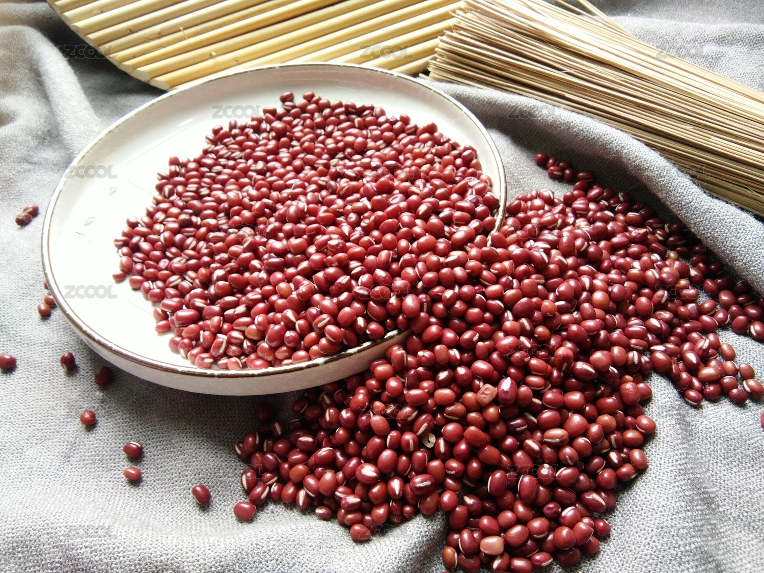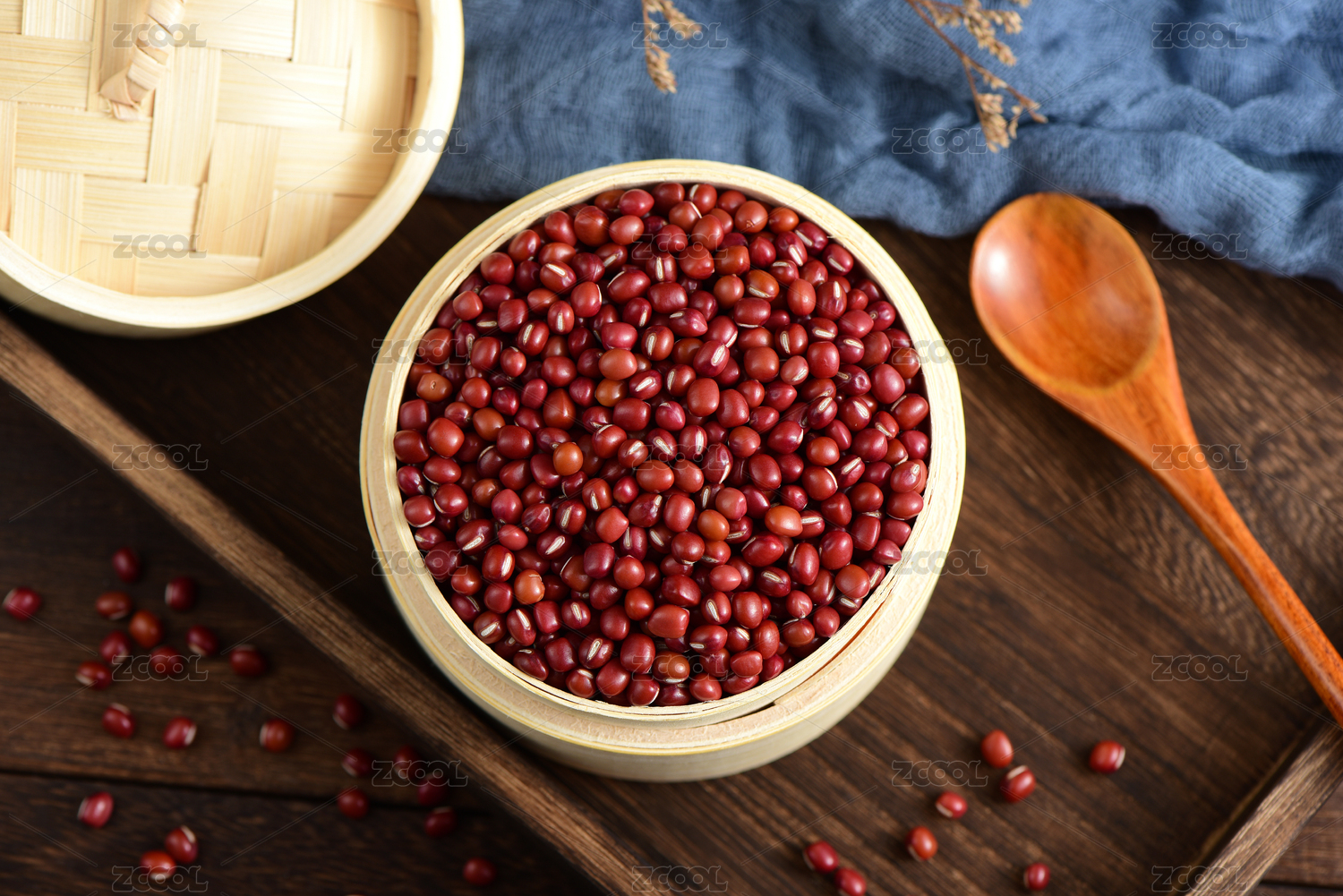 复古中国风格背景上放在蒸屉里的红小豆特写图片