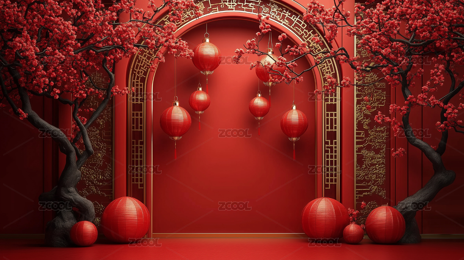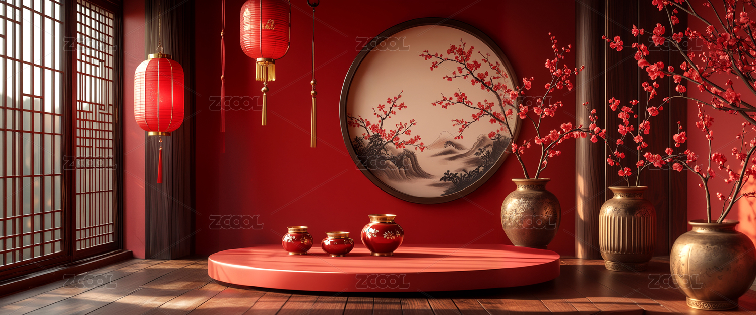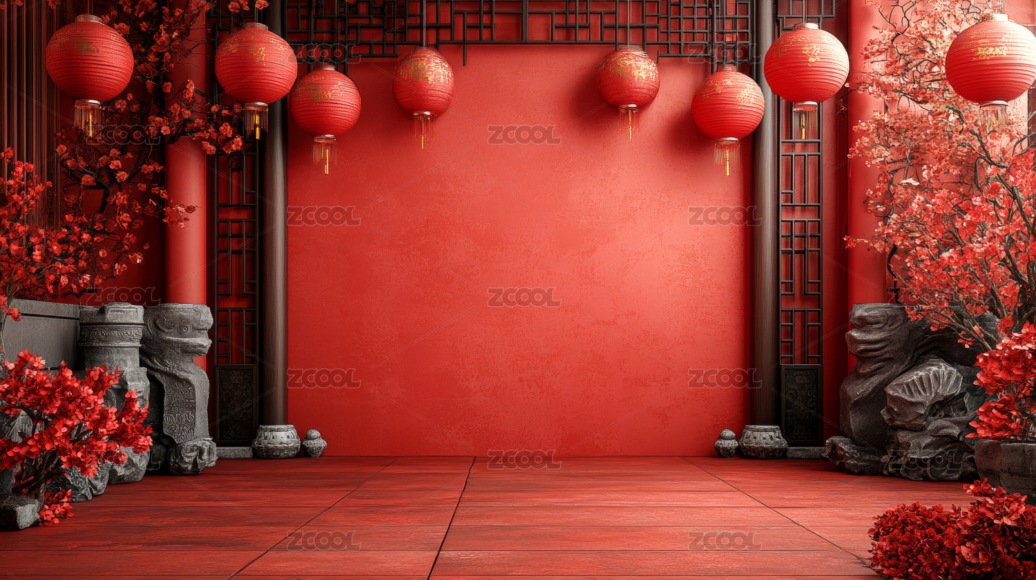 红色背景下的中式灯笼