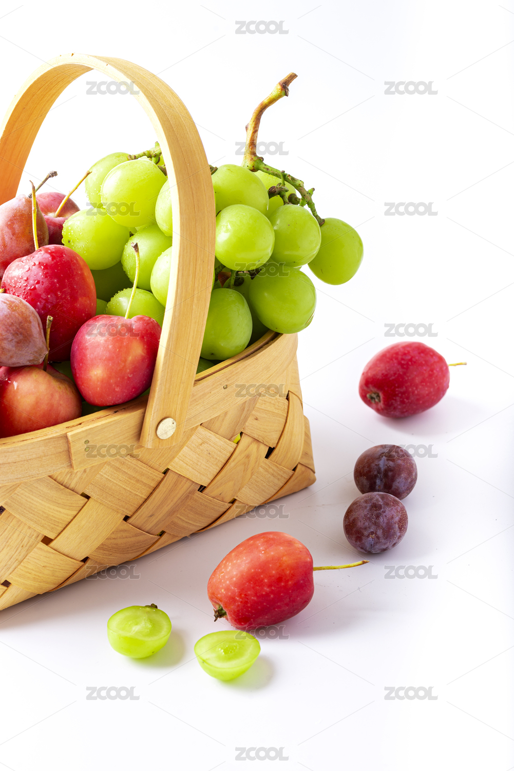 新鲜的水果提子和苹果放在篮子里