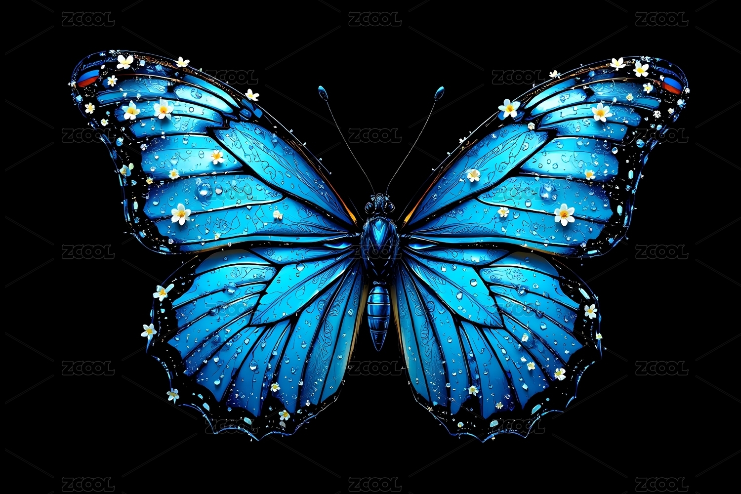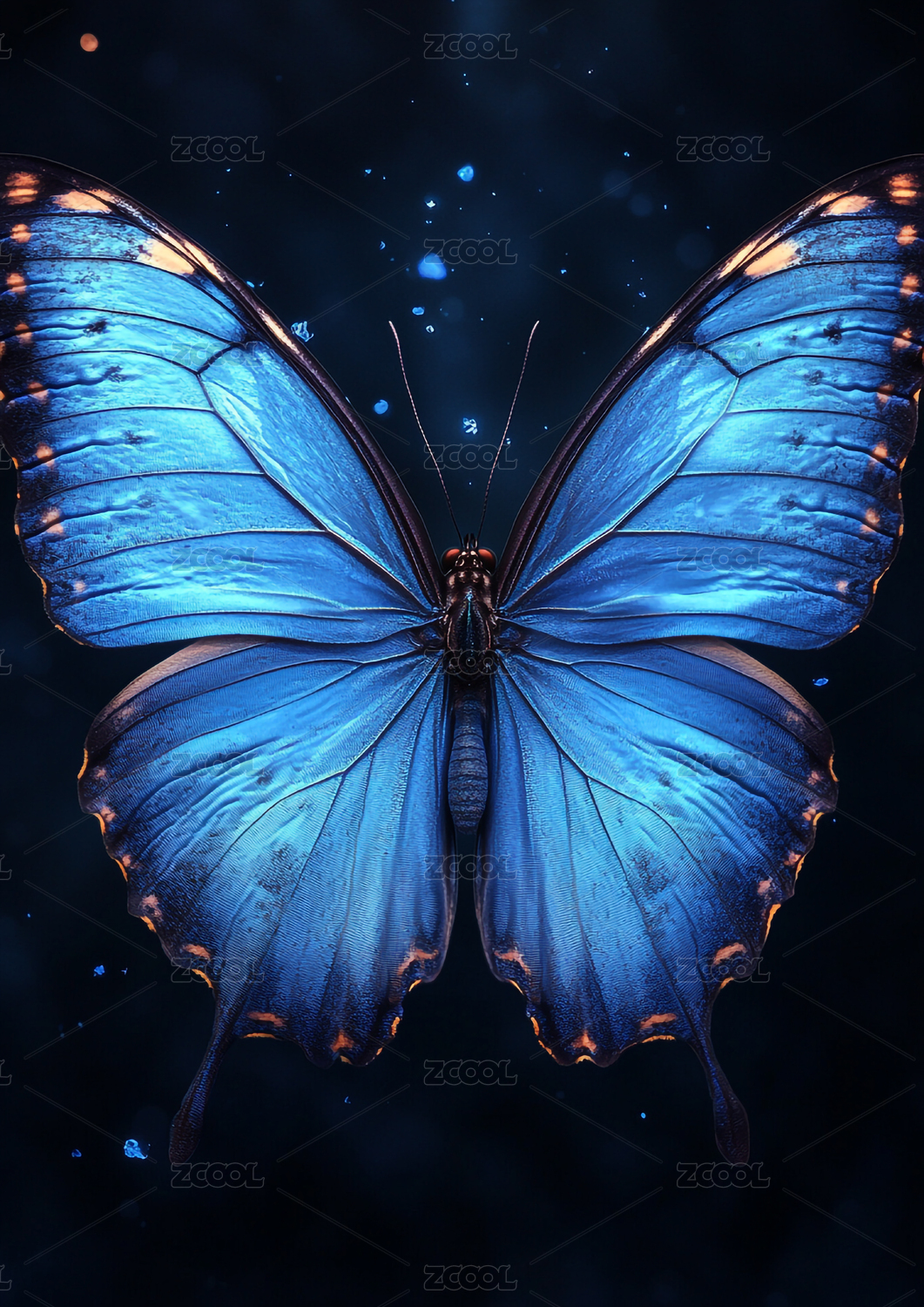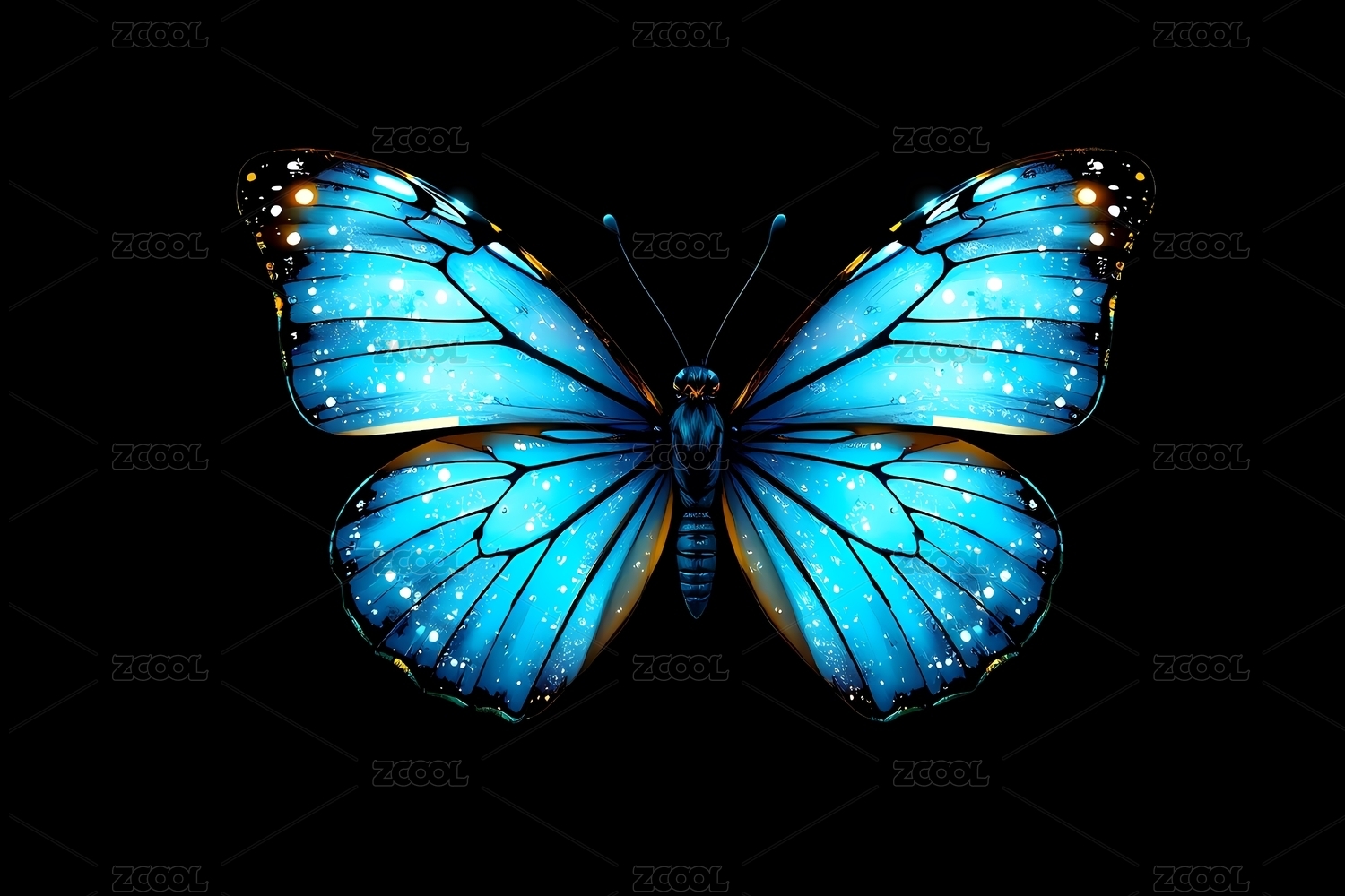 蓝色写实荧光蝴蝶闪光唯美壁纸