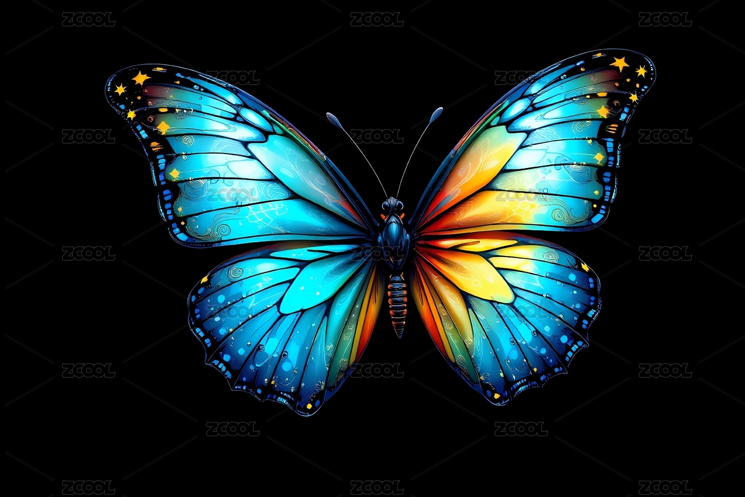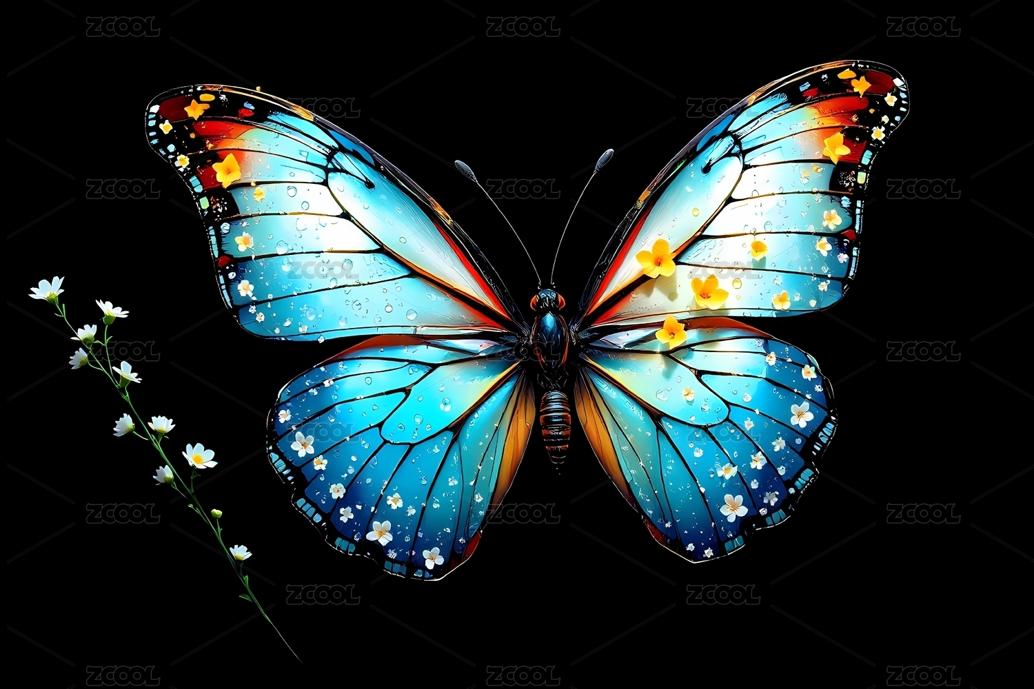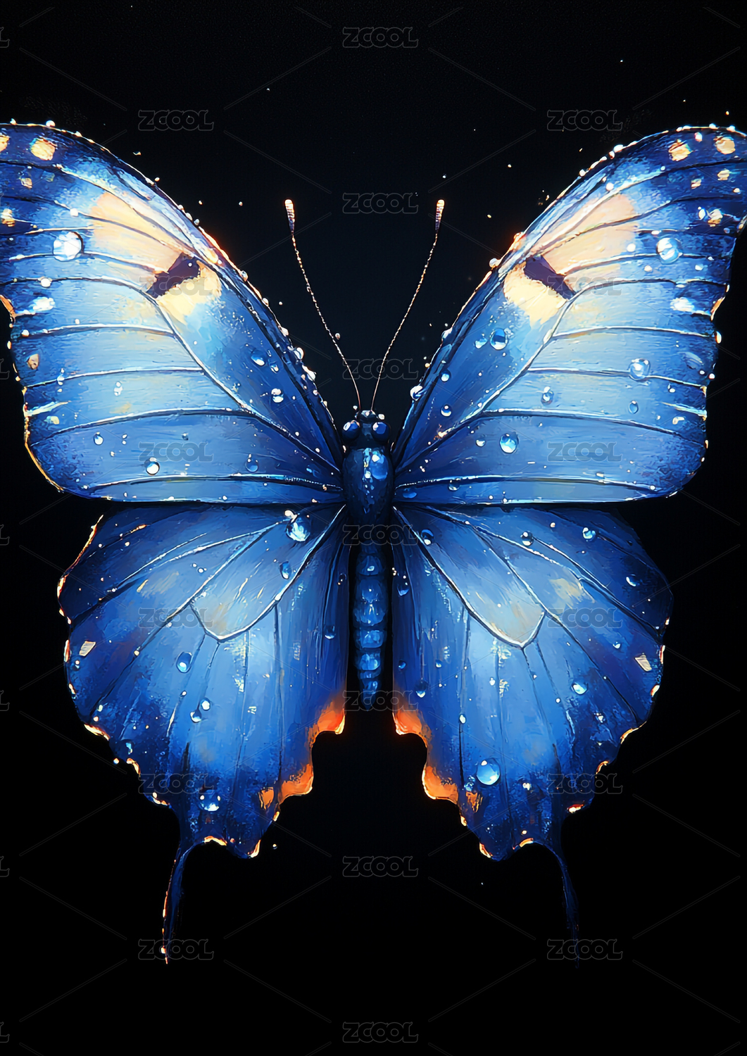 蓝色写实荧光蝴蝶闪光唯美壁纸